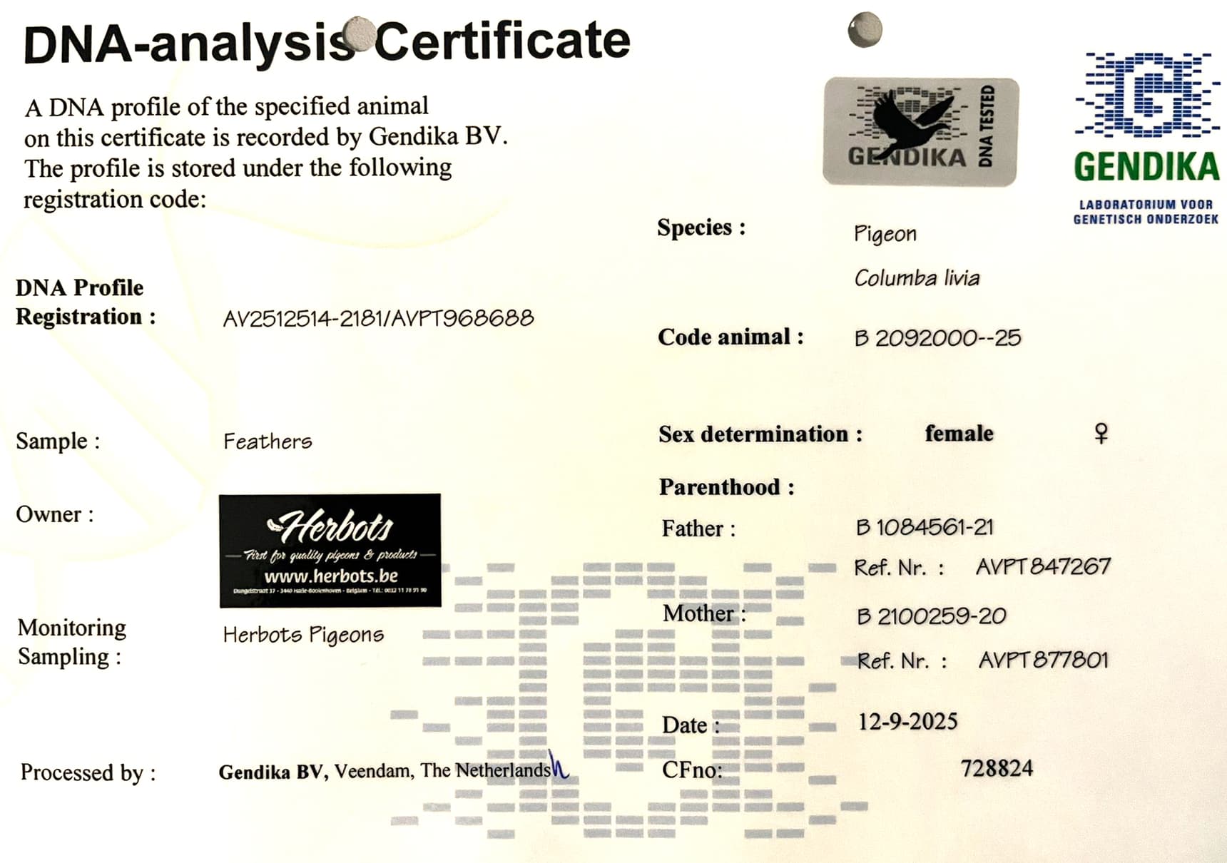 Mother: BE2100259-20 “GEOFFRIA”