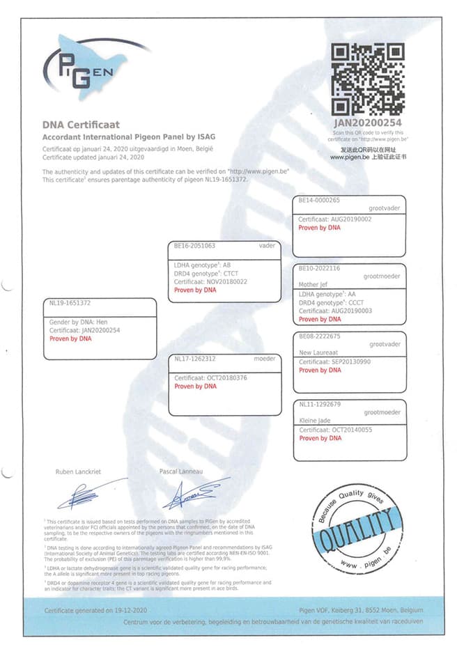 1. European acebird Pioneer 2020 – G.child ‘New Laureaat’