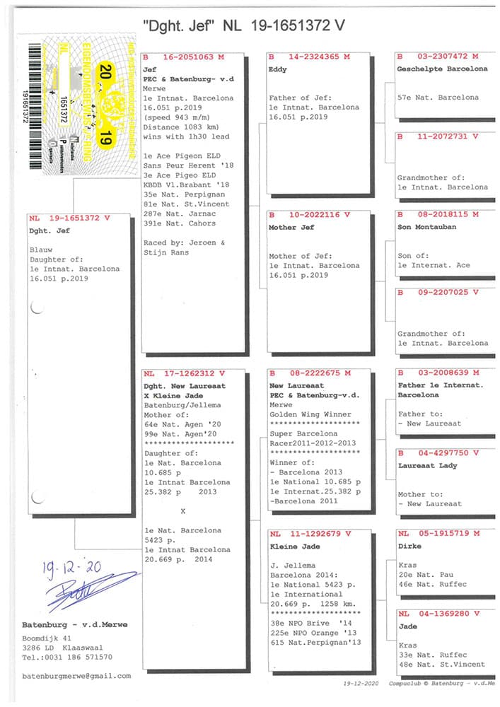 Jef was sold in JANUARY 2023 for 122,00 euros to the original breeder and racer Rans Stijn & Jeroen!