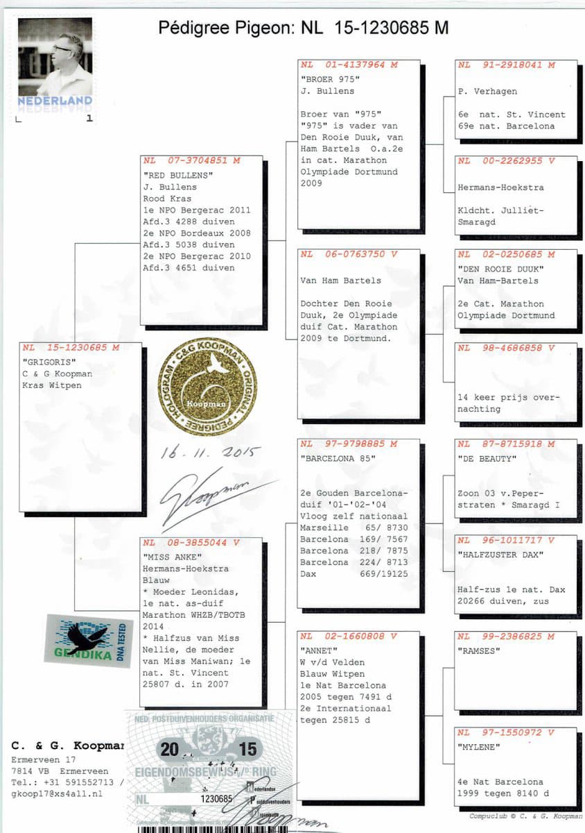 Red Bullens was a phenomenal racer on the marathon races! Also he grew into an absolute top breeder for Gerard Koopman and a legendary breeder in the pigeon sport.