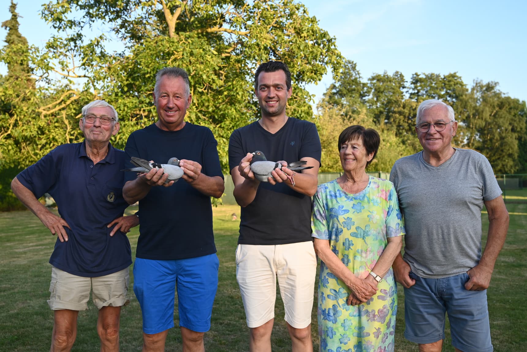 Après avoir remporté le 1er National Cahors il y a quelques semaines avec “Golden Medard”, c’est maintenant au tour de “Golden Aimee” (baptisée ainsi en l’honneur de la petite-fille de Gino) et de “Silver Souillac” de s’emparer des deux premières places dans le classement national de Souillac, face à 4.577 vieux pigeons.