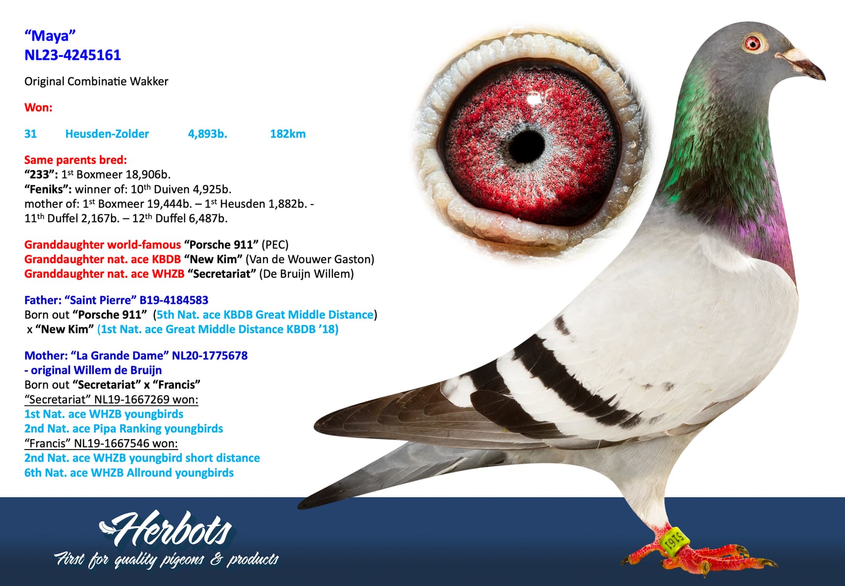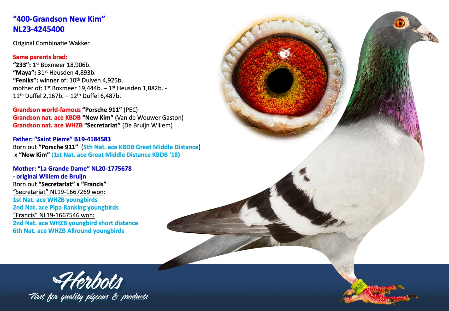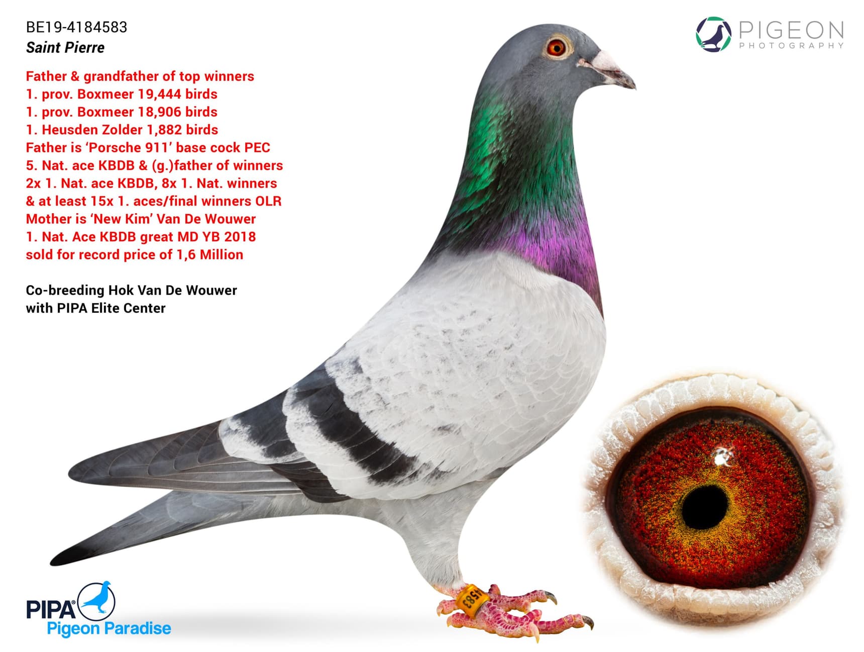 "Saint Pierre" B19-4184583 is een rechtstreekse zoon uit 2 wereldberoemde duiven namelijk "Porsche 911" x "New Kim"