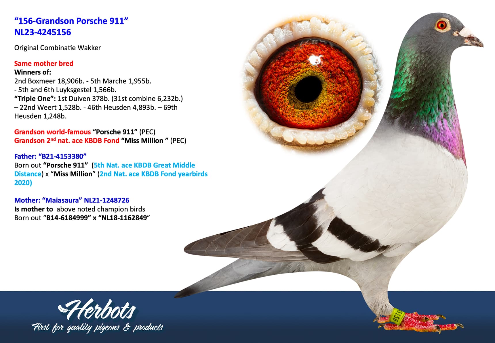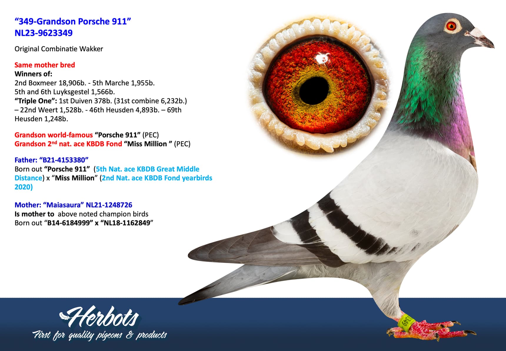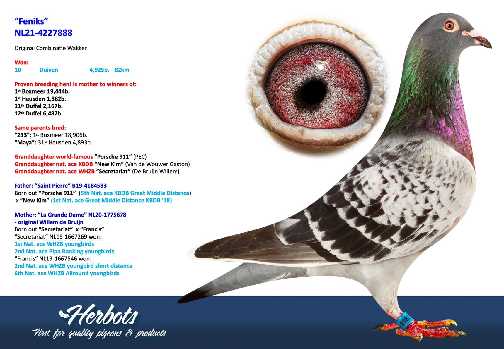 "Saint Pierre" B19-4184583 is een rechtstreekse zoon uit 2 wereldberoemde duiven namelijk "Porsche 911" x "New Kim"