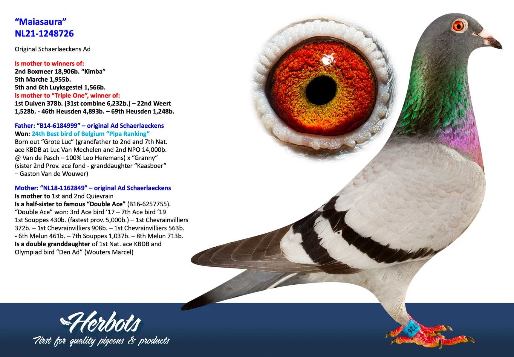 "Maiasaura", een rechtstreekse Ad Schaerlaeckens duivin, een bewezen kweekdame want ze is moeder van: