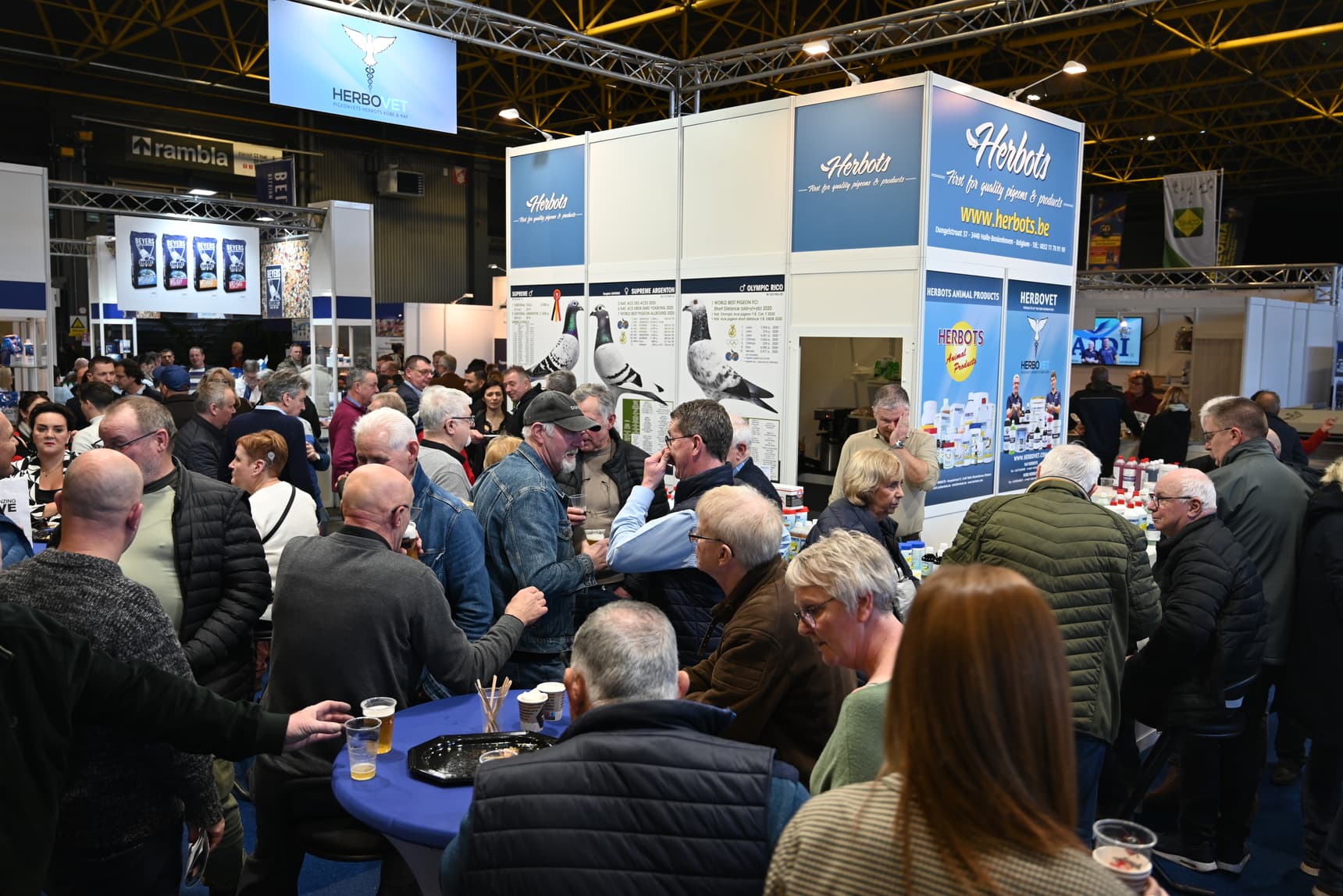 Zoals gewoonlijk een drukte aan de stand van Herbots en ook bij Benzing hadden ze meer dan de handen vol . Een geweldig apparaat waar we trouwens zelf mee klokken en waar we uiteraard enorm tevreden over zijn . Een geweldige service en ook wanneer we Tom bellen steeds antwoord krijgen , een geweldige kerel zou Eddy Wally gezegd hebben ! En met het prachtig weer dat voorspeld werd zien we de “quievrainisten” straks hun manden van de zolder nemen om met hun duiven op stap te gaan . Want Maart is in zicht en dan gaat het heel snel . De pure “quievrainisten” starten meestal op nest indien het weer wat minder goed is ben je meestal beter met nestduiven dan met weduwnaars . Weduwnaars vragen eerder om warm weer . Wat de voorbereiding betreft zijn er veel wegen die naar Rome lopen de ene doet aan winterkweek , een ander laat ze een of twee keer broeden en gaan zo op weduwschap. Albert Derwa zijn duivinnen deden aan winterkweek andere jaren koppelt hij ze zodanig dat ze gelijk vallen met de tweede ronde van zijn kweekduiven . Hier werden ze gekoppeld zodat de jonge rond 20 Maart klaar zijn om af te zetten en daarna komen ze niet meer bij elkaar . Gaby Vandenabeele zijn weduwnaars kwekten nooit voor het speelseizoen die mochten twee maal broeden en dat was het . Zo zie je dat iedere methode goed is zolang er klasse op de hokken zit !