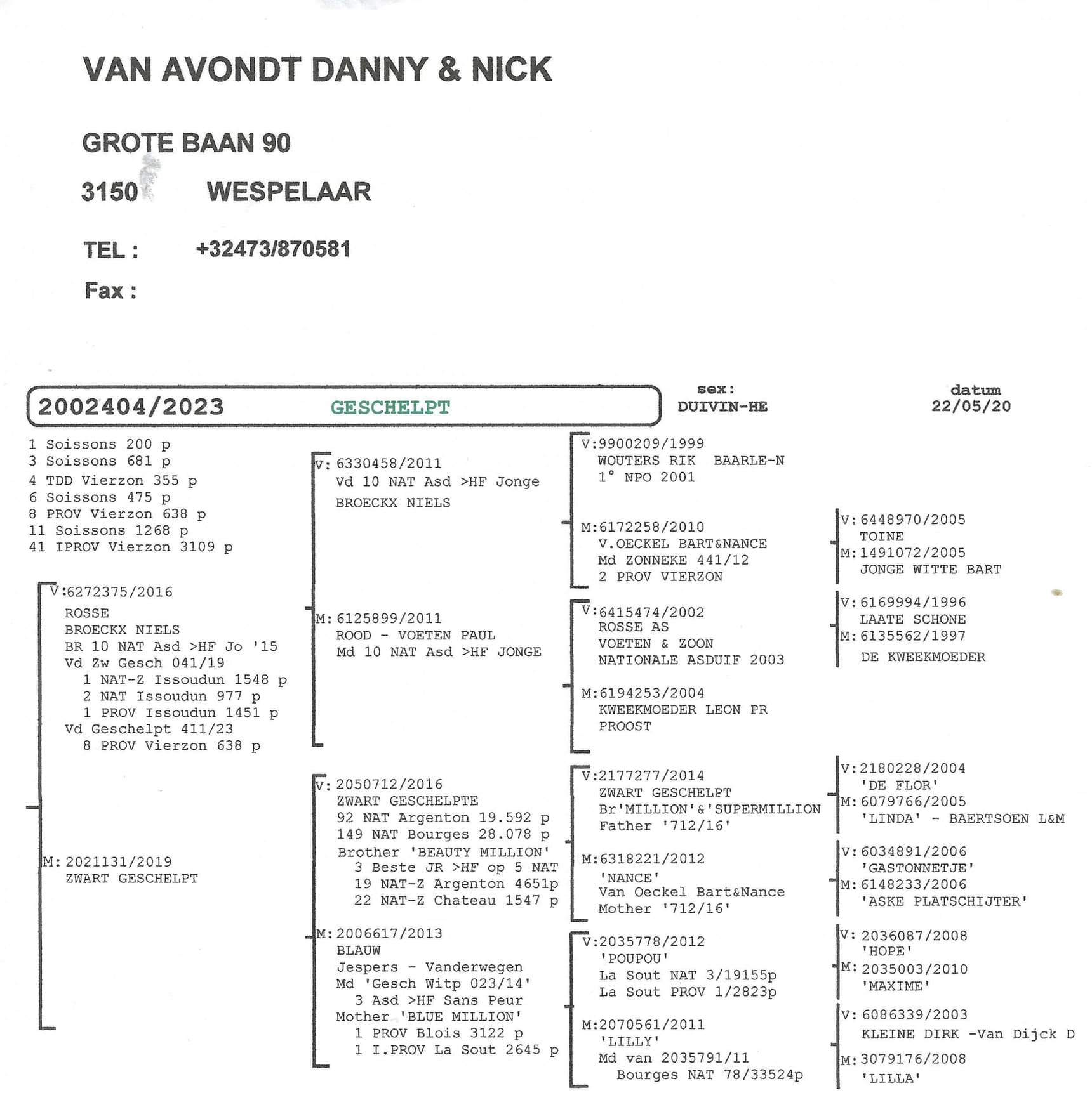 Dochter van “712/16” Zwart Geschelpte won zelf 92 Nat Argenton 19.592d en 149 Nat Bourges 28.078d x “617/13” Blauw Jespers – Vanderwegen
