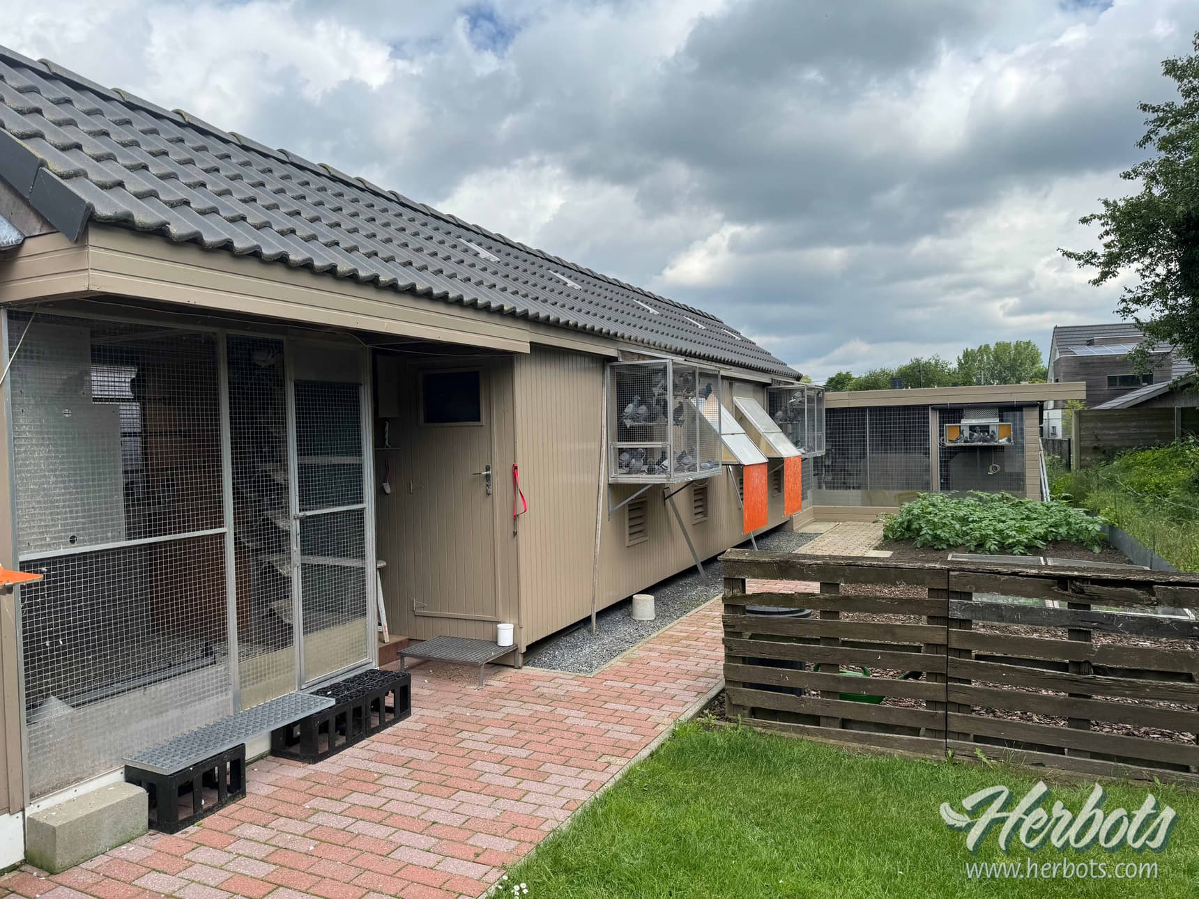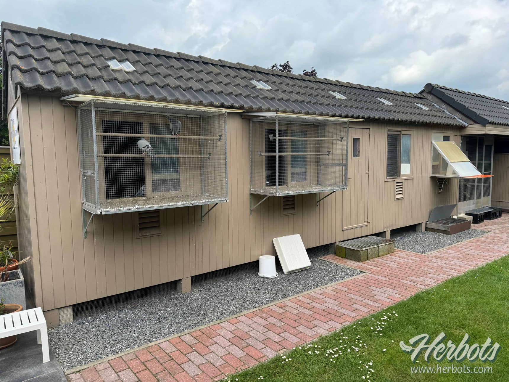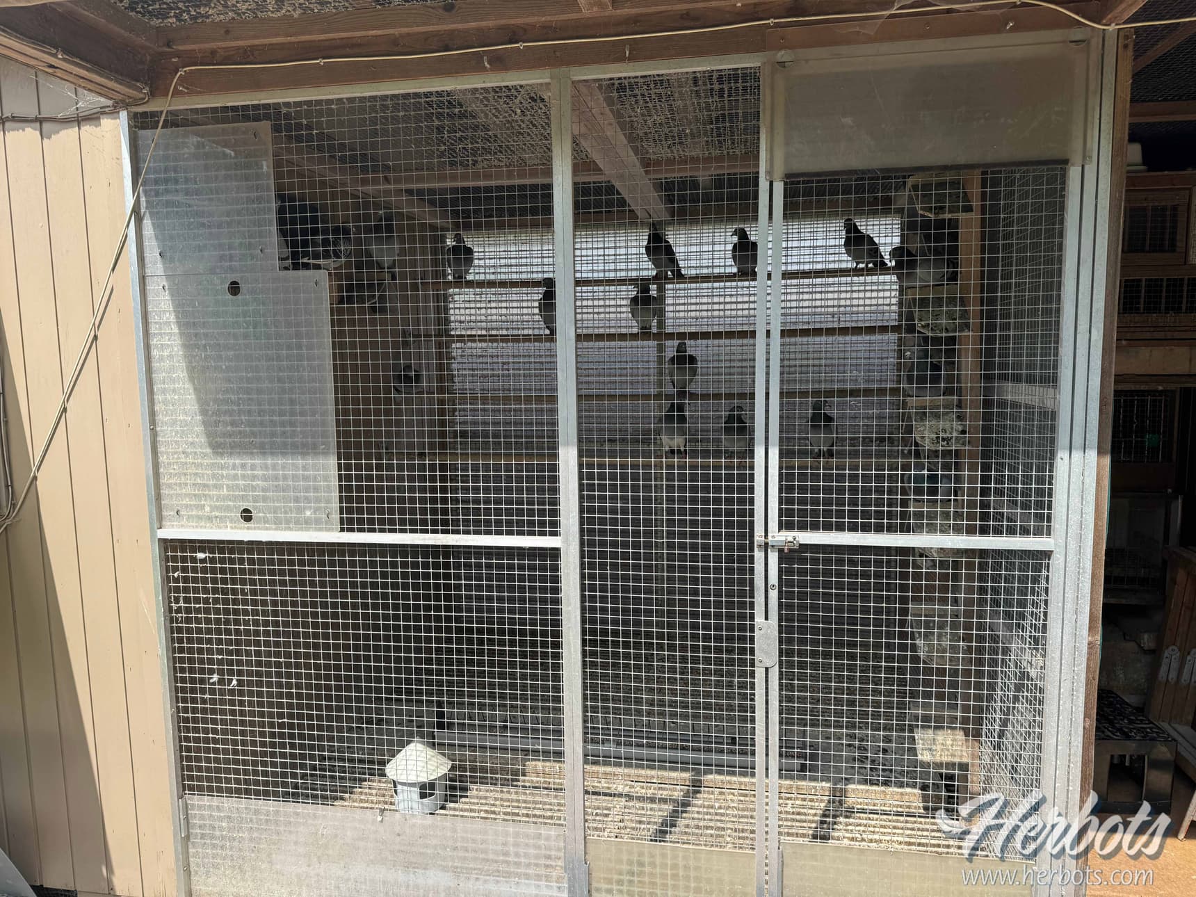 De duivinnen huizen dus altijd dag en nacht in de volière, enkel in de periode dat ze verduisterd worden komen ze ’s avonds binnen om verduisterd te kunnen worden. Als deze periode voorbij is zitten ze opnieuw dag en nacht buiten.
