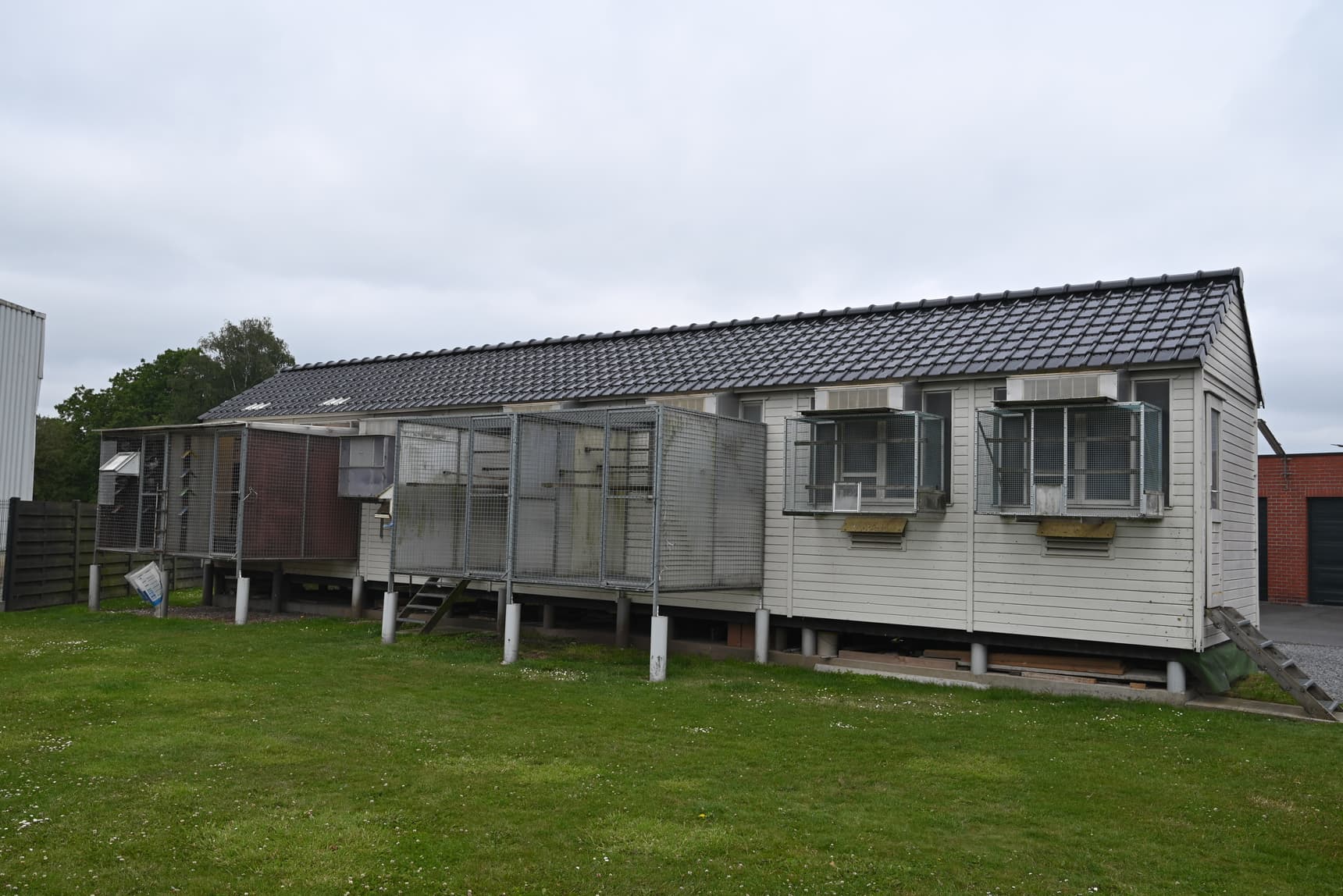 De duivinnen huizen overdag – wanneer het goed weer is – in een aanpalende kleine volière en indien het slecht weer is in hun rusthok. Op de vloer is een “rollensysteem” gemonteerd zodat ze geen plaats hebben om onderling te paren.
