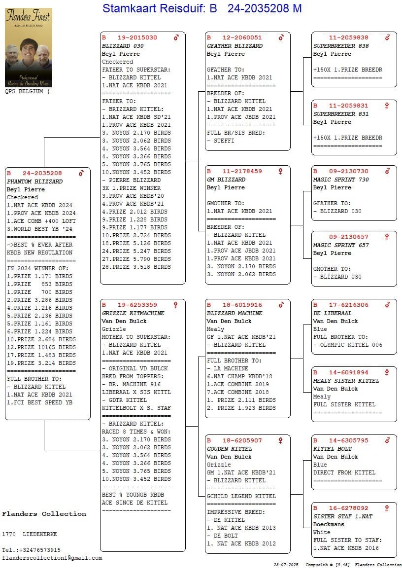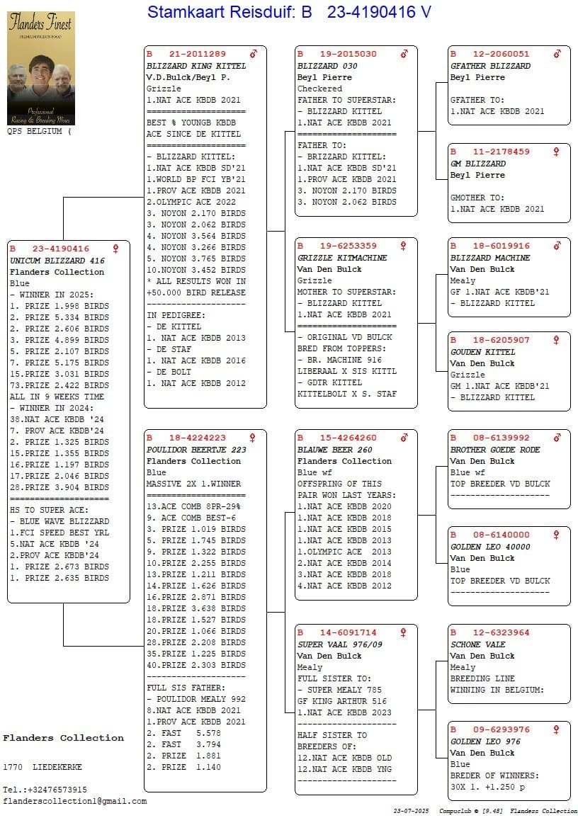 “Unicum Blizzard 416”: dochter van “Blizzard King” : 1e nationale asduif KBDB snelheid oude duiven 2025