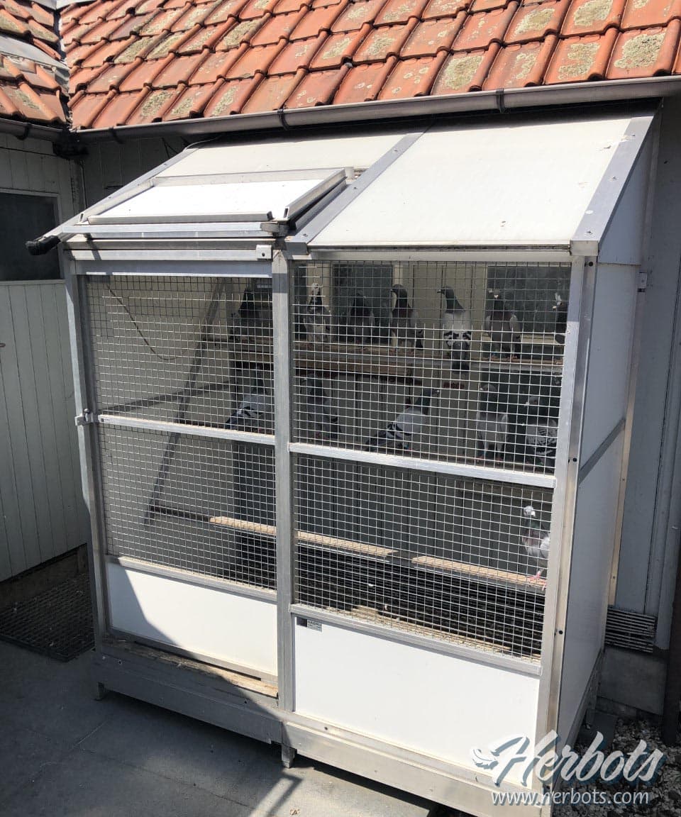 De duivinnen zitten overdag altijd in een kleine volière aan de voorzijde van het hok, aan de zijkant van het hok is een andere volière die dicht is met windbreekgaas waar hun partners in vertoeven. Deze worden niet verduisterd of bijgelicht, het doel is om in augustus de duivinnen op nest te brengen om de laatste nationaals te vliegen op een jong. Dit is een succesformule die hen al heel veel heeft opgeleverd qua nationale prestaties.