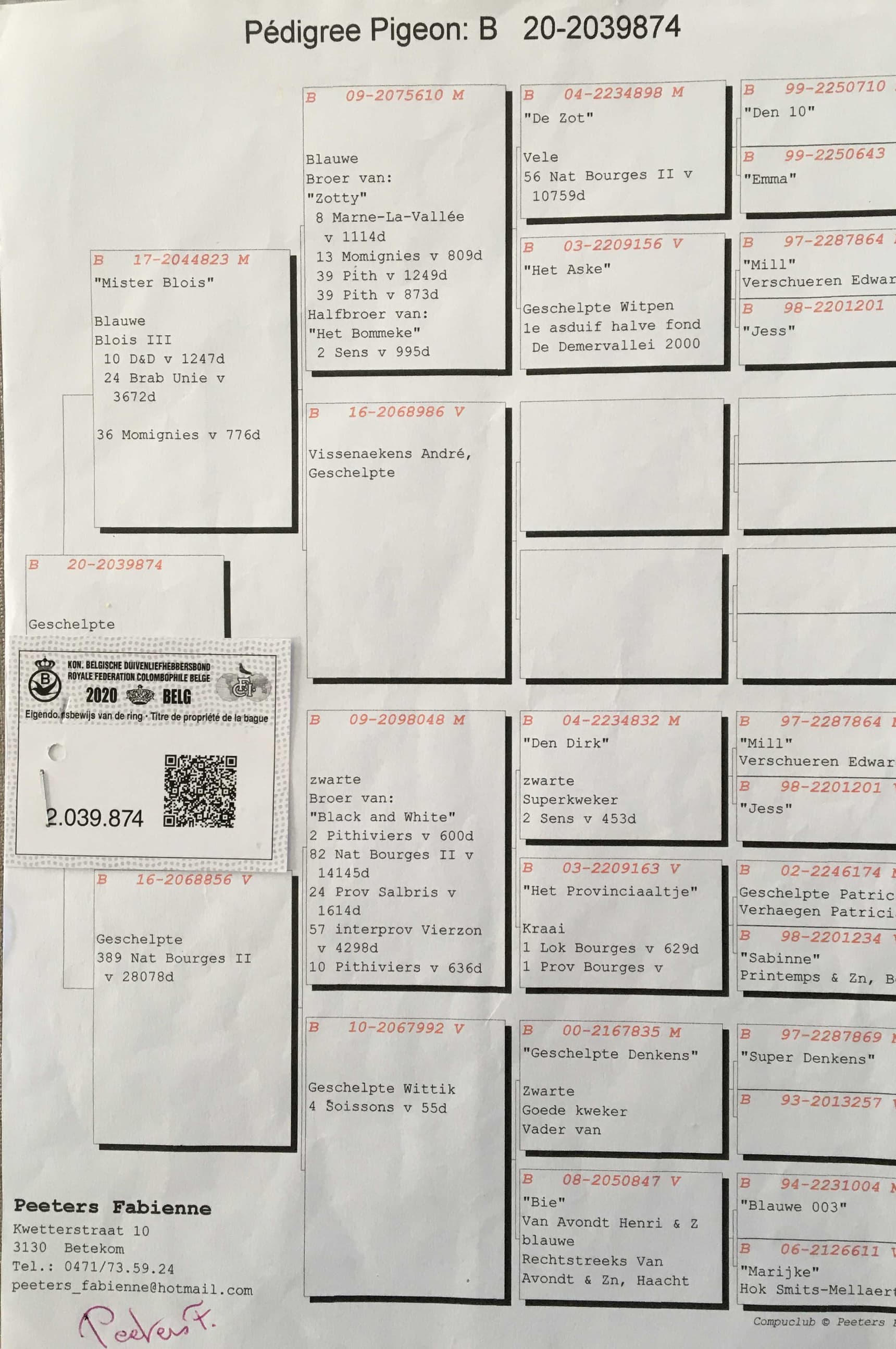 Mijn beste aankoop was natuurlijk “Roosje” in 2020. Deze duivin werd aangekocht bij Fabienne Peeters (Dirk Wouters). Het was een vriend van mijn zoon die er op aandrong om deze liefhebber te gaan opzoeken op de markt en daar enkele jongen aan te kopen. Een gouden tip zoals nu blijkt.