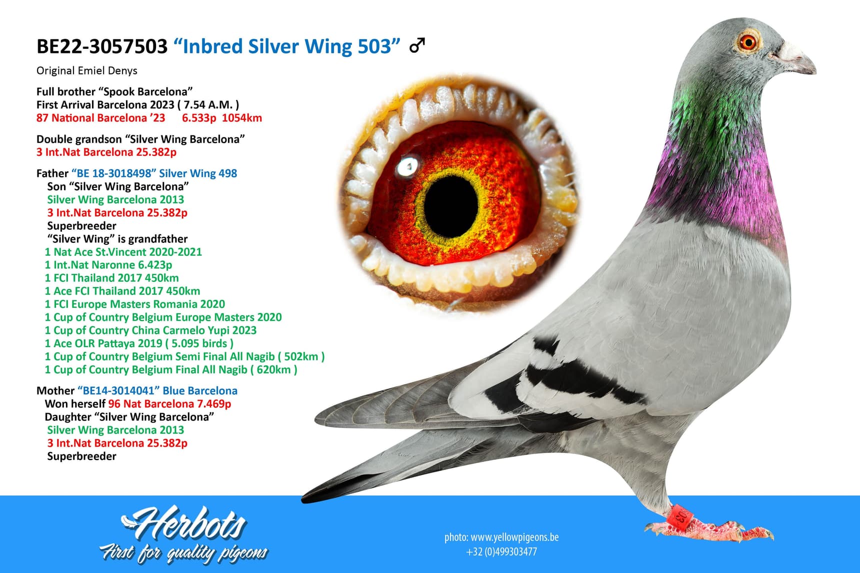 Deze topper was de eerste aankomst van Emiel op de editie van Barcelona 2023 en werd geklokt om 7u54. Een super prestatie en deze topper is pure inteelt naar “Silver Wing Barcelona” Zilveren Vleugel Brugse Barcelona Club 2013 en 3de Int.Nat Barcelona 25.382 duiven in 2013.