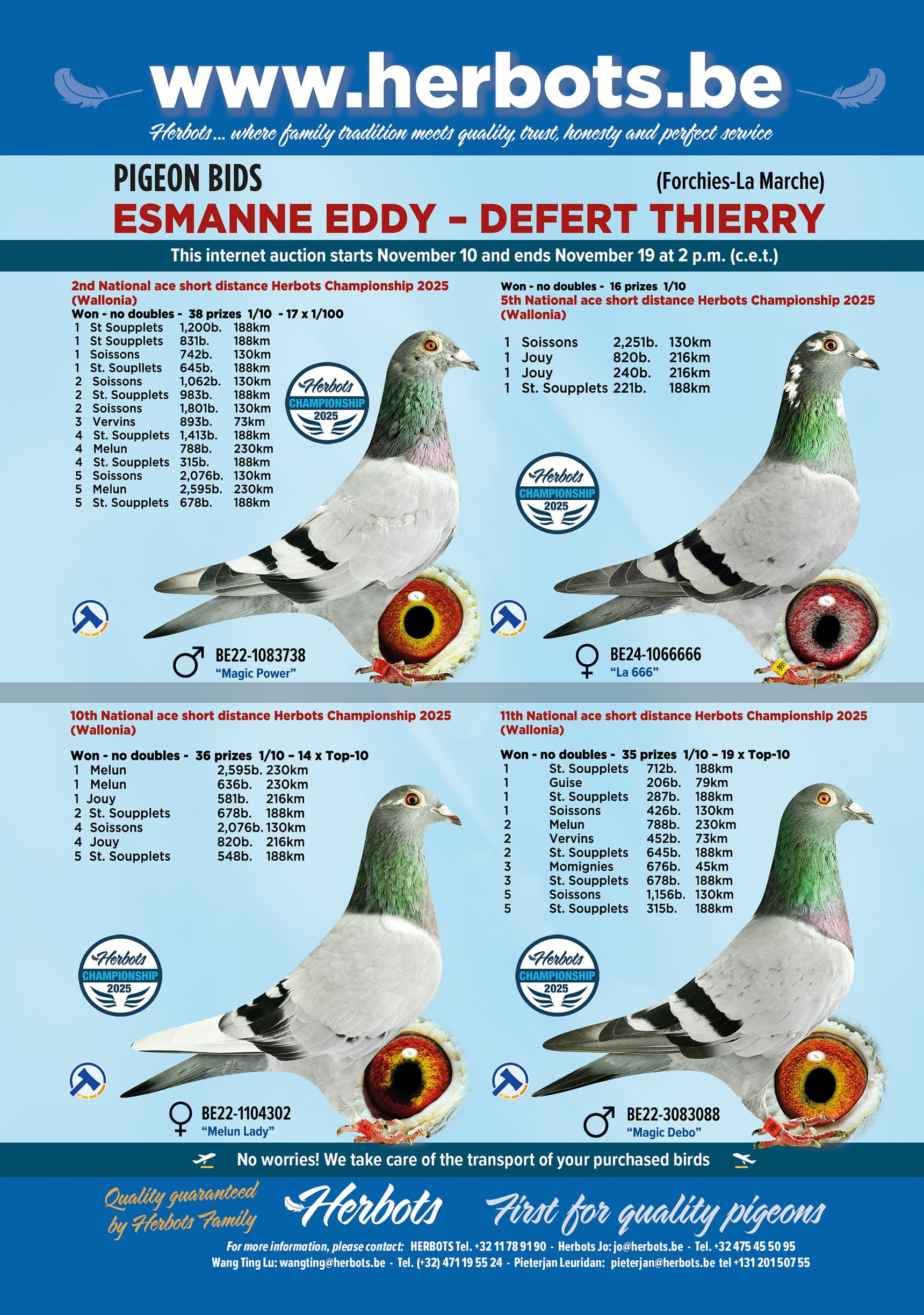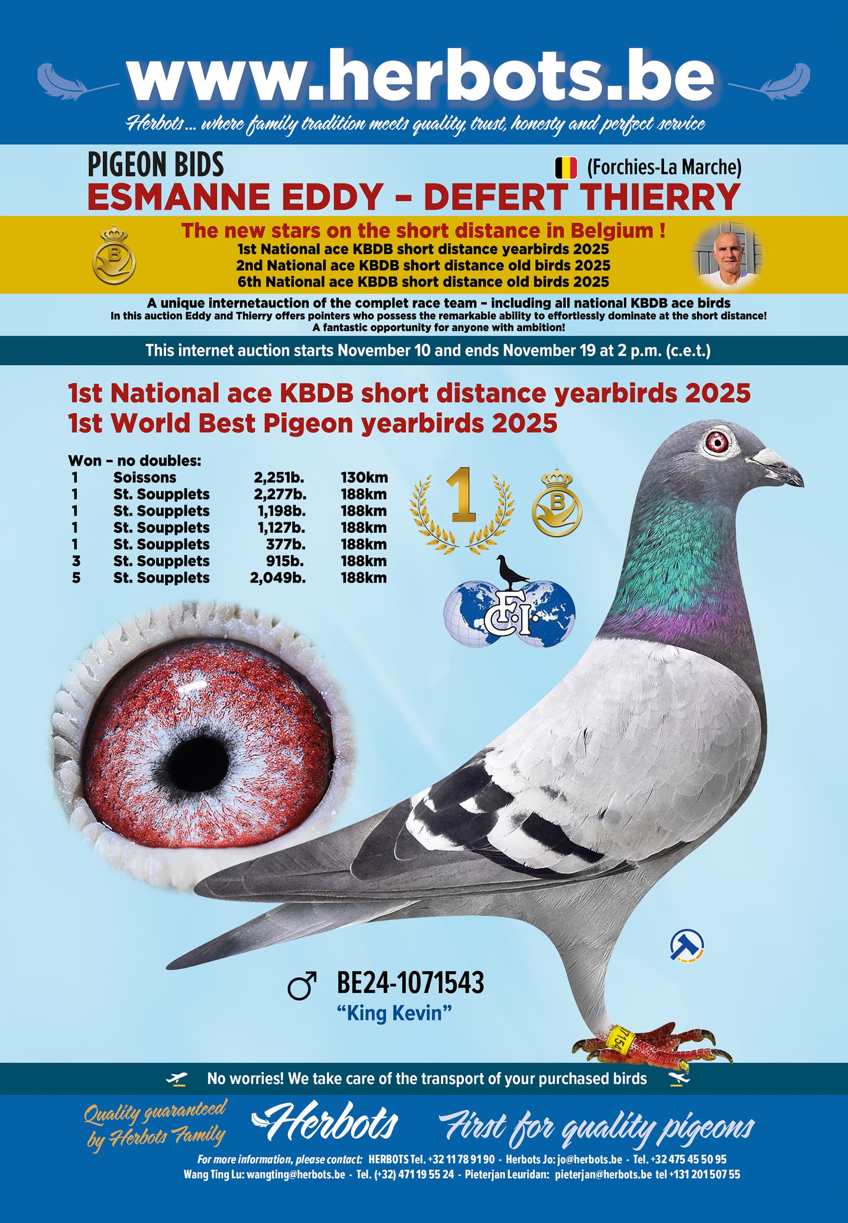 En wat niemand ooit gedacht had, is een feit. Eddy en Thierry hebben besloten om hun 30 beste vliegers in een online verkoop aan te bieden. Een zelden geziene topverkoop inclusief alle nationale KBDB asduiven en 19 verschillende 1e prijswinnaars!