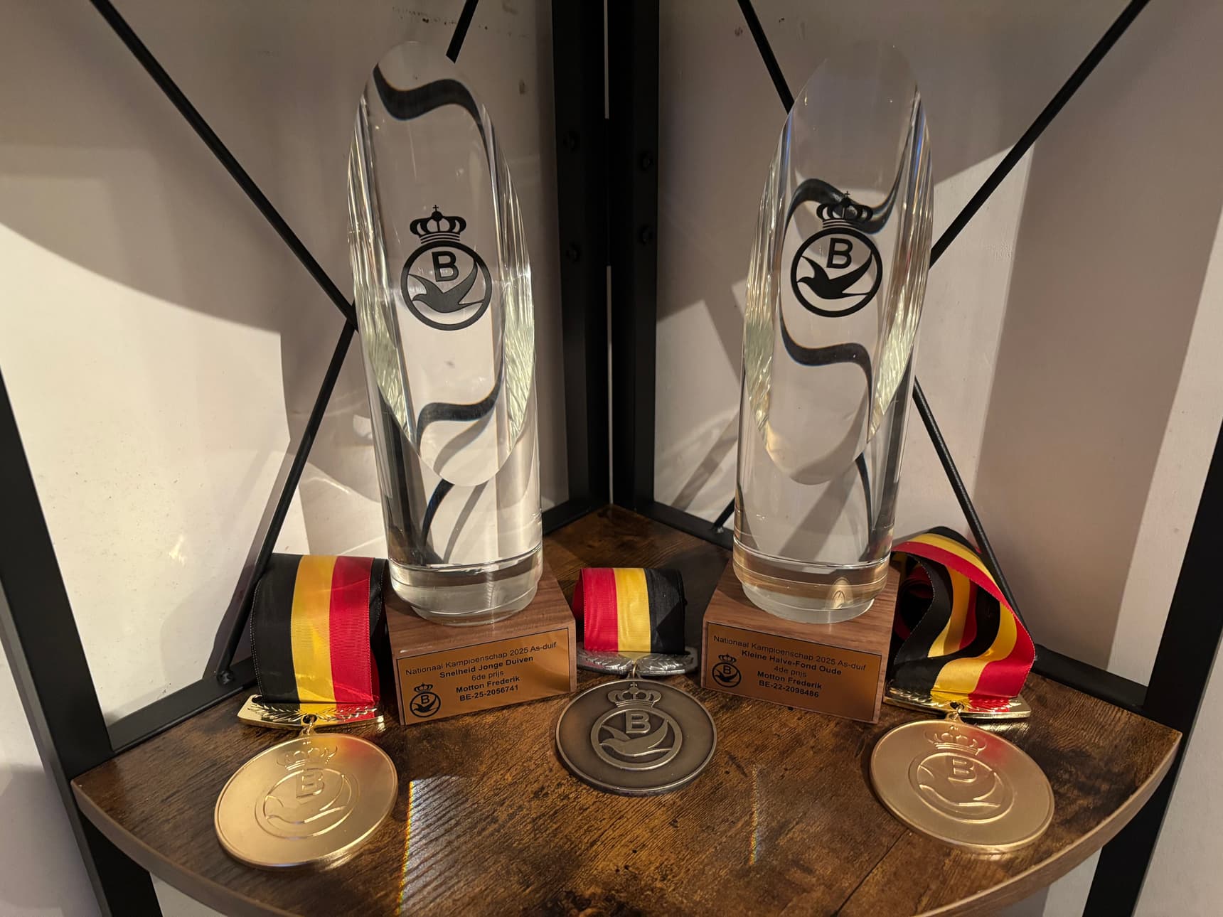 - en “Ronan”, de 6e Nationale Asduif KBDB Snelheid Jonge duiven 2025 en 12e Olympiade duif voor België in Categorie F Dortmund 2026