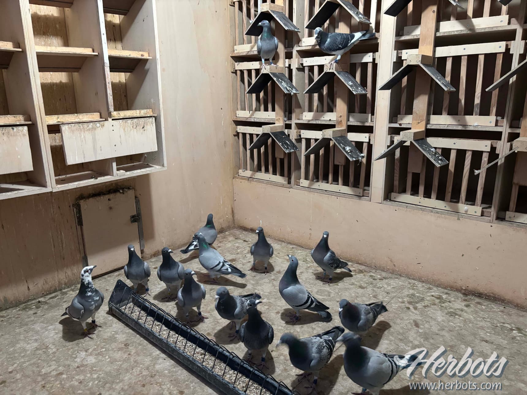 De jonge duiven trainen dagelijks en worden eenmaal per dag gevoederd. Alles wat wordt aangeboden moet worden opgegeten. Van begin maart tot eind juni worden ze verduisterd en nadien bijgelicht om de vorm optimaal te sturen. Rond half juli worden de geslachten gescheiden en wordt er op de schuifdeur gespeeld. De opbouw wordt steeds geleidelijk aangepakt maar zijn jonge duiven worden toch ingezet op verschillende afstanden om ervaring op te doen. In Hélécine wordt eveneens gespeeld met een ploeg van 22 duivinnen, waaronder vier oude (in 2025). Voor 2026 zitten er momenteel 24 duivinnen klaar, waaronder 8 oude). Overdag verblijven zij in de volière om koppelen te voorkomen en ’s nachts in het nachthok met rollen. Ze nemen deel aan snelheid, kleine halve fond en grote halve fond. Opvallend is de eenvoud in het voederregime. Ongeacht de afstand krijgen alle duiven hetzelfde menu in aanloop naar de inkorving. De partners worden niet getoond voor het inkorven maar wel bij thuiskomst, wat zorgt voor motivatie zonder overprikkeling.