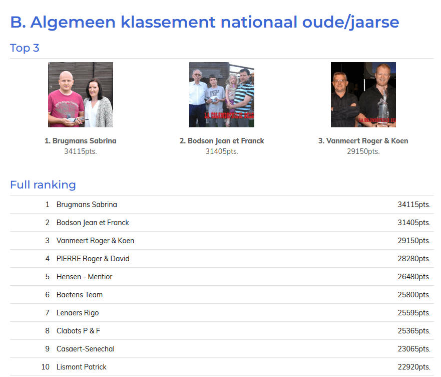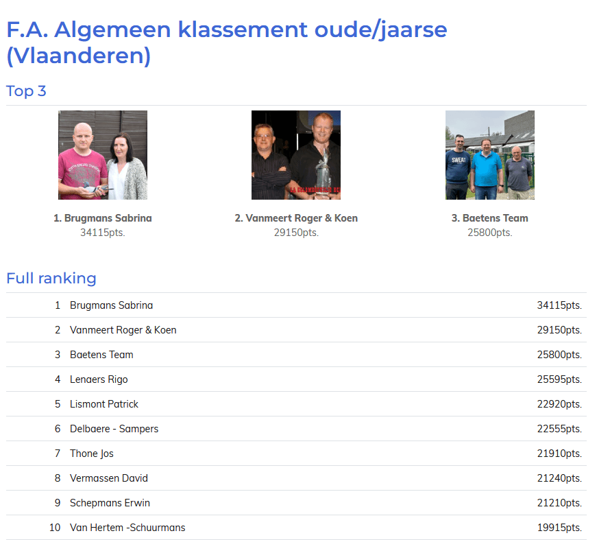 Voor het kampioenschap en beste hok kan je vanaf 1 september kan je al de Asduiven voor alle categorieën invullen, net zoals beste hok over een gans seizoen ( met 3 eerste getekenden ).