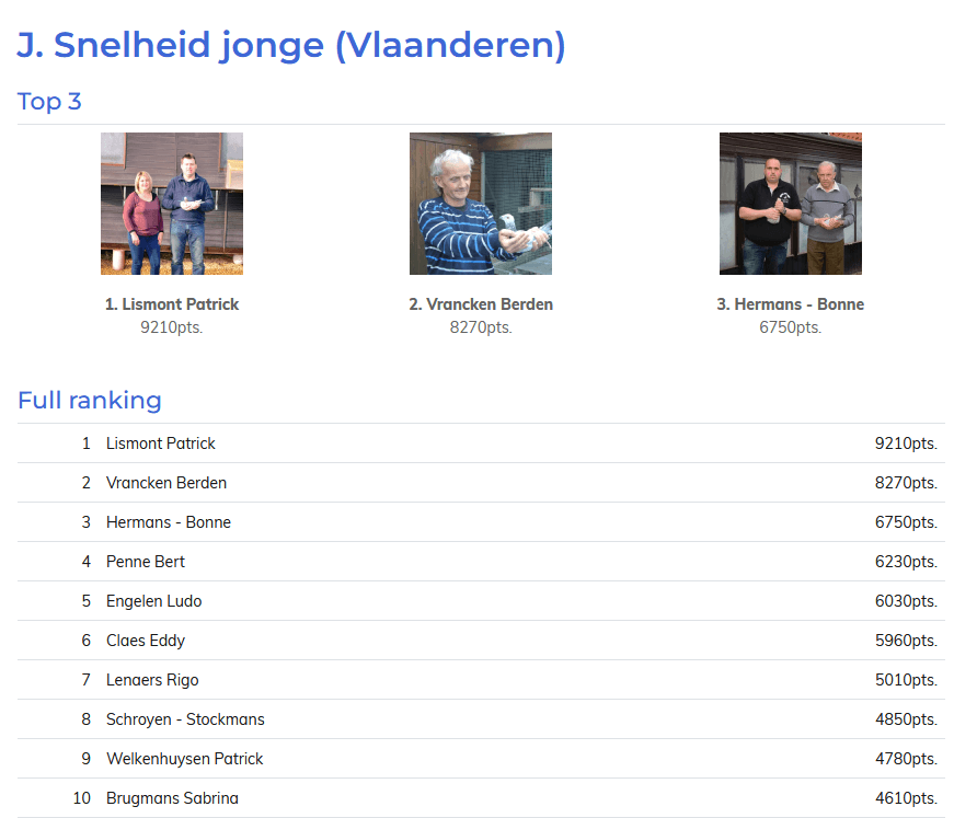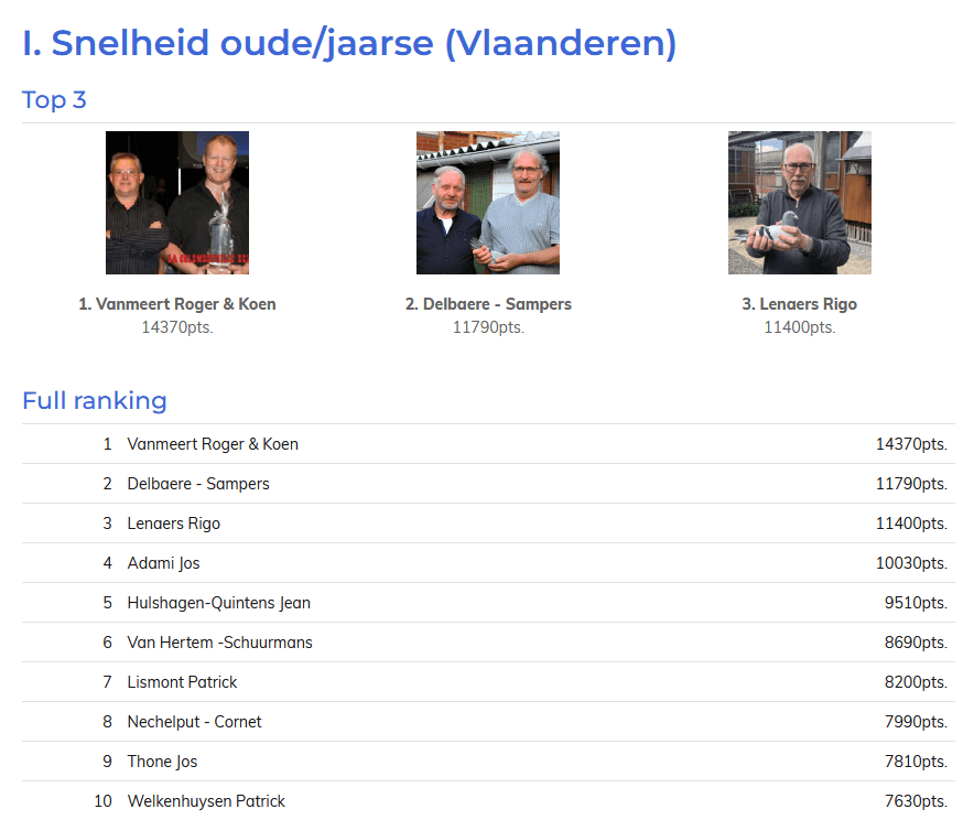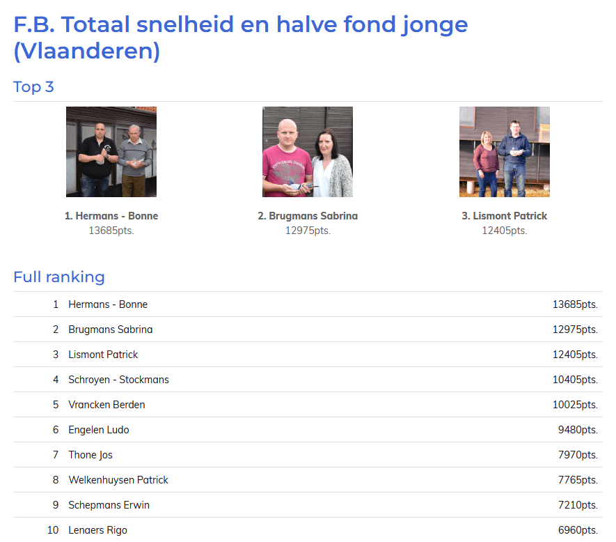 We gaan op zoek naar de beste duif die het meeste prijzen per 100-tal heeft gevlogen op snelheid, halve fond en fond + zware fond.