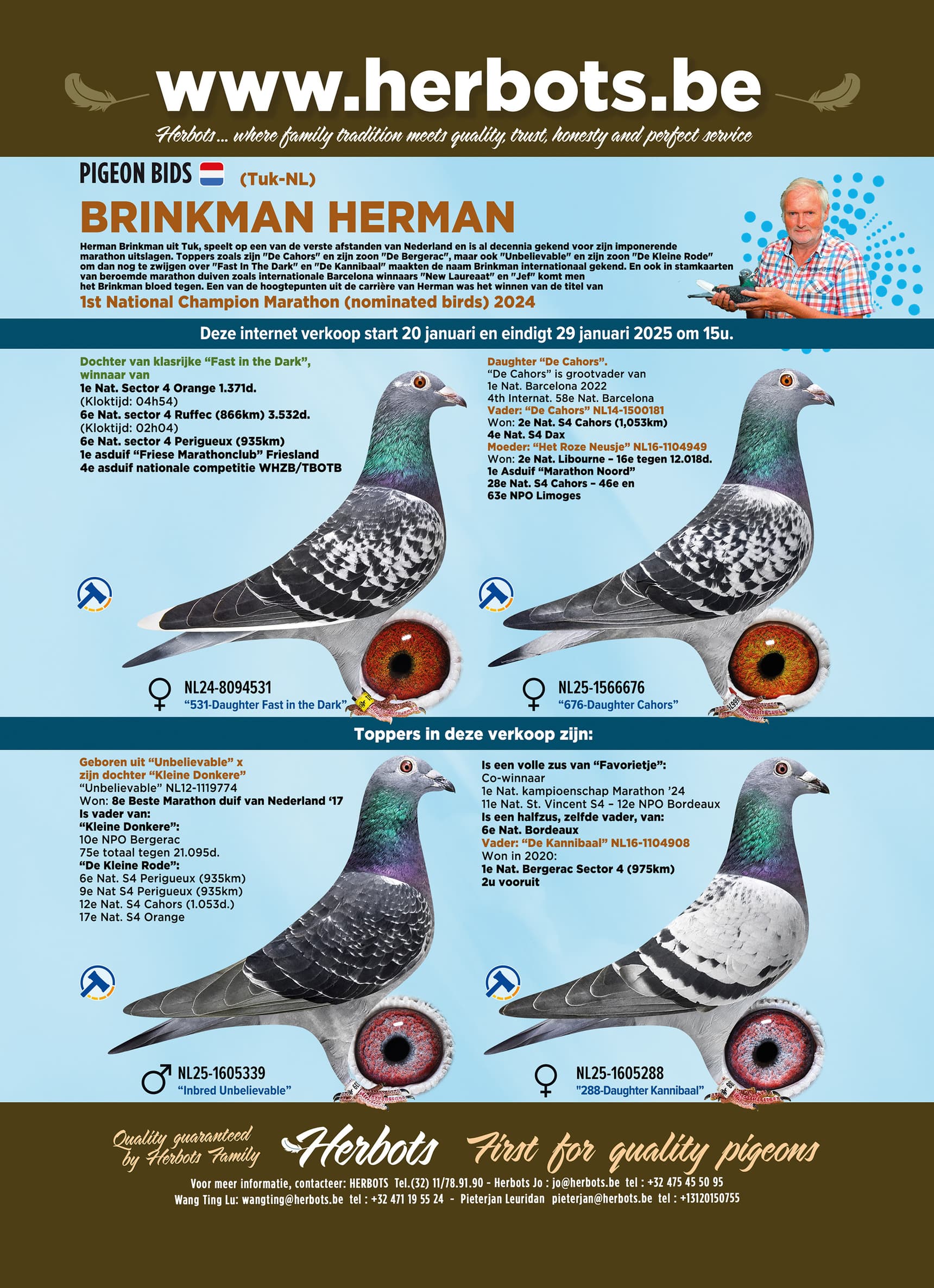 Exclusief voor Herbots selecteerde Herman een top groep uit zijn allerbeste kweekduiven.