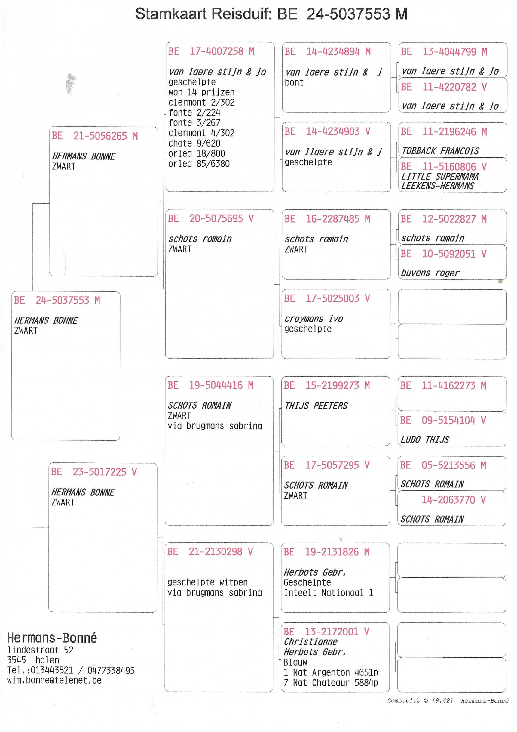 Zoon van “258/17” Geschelpte Stijn & Jose Van Laere x “695/20” Zwart Romain Schots