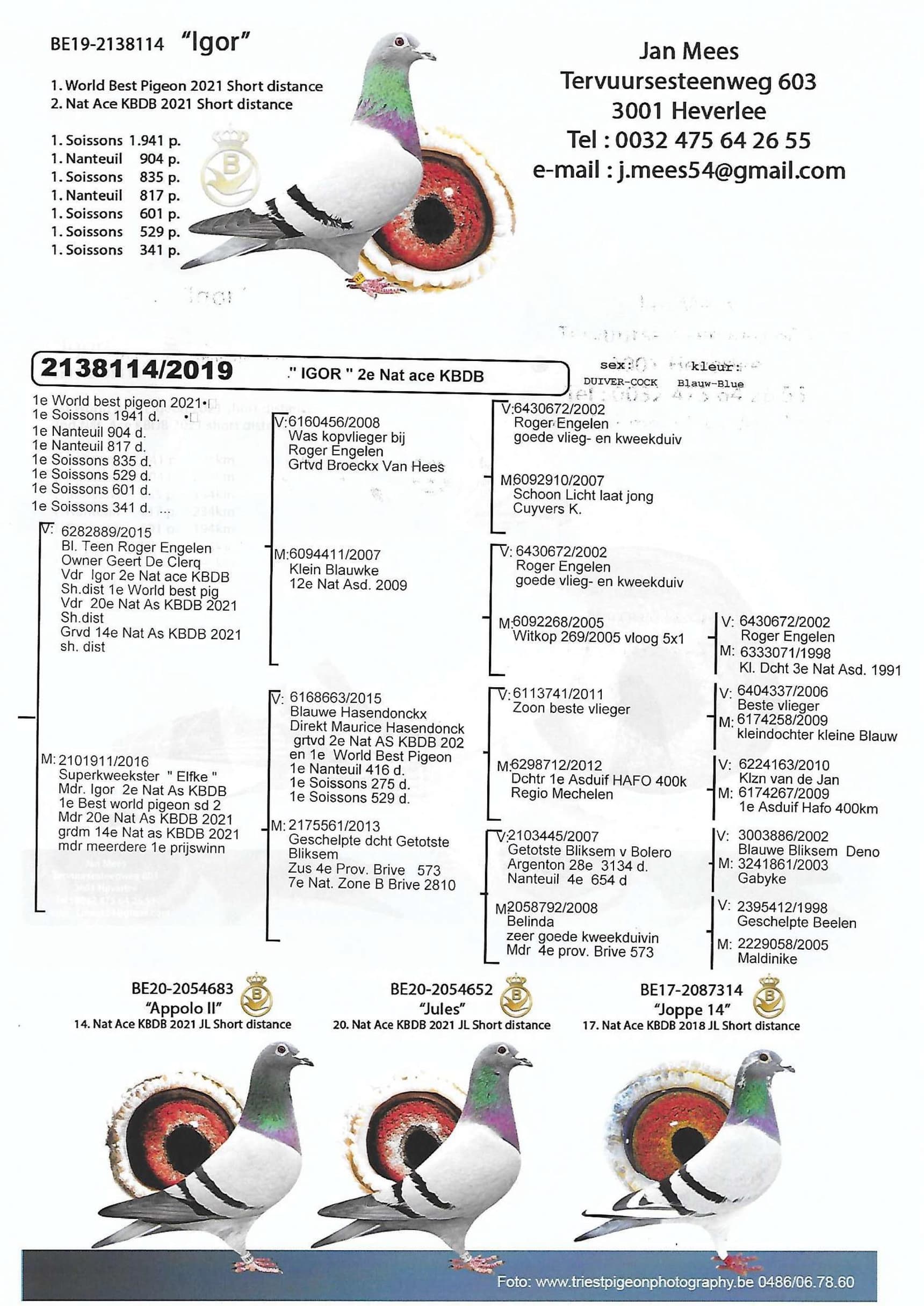 ½ broer “Igor” 1ste World Best Pigeon Asduif Snelheid 2021