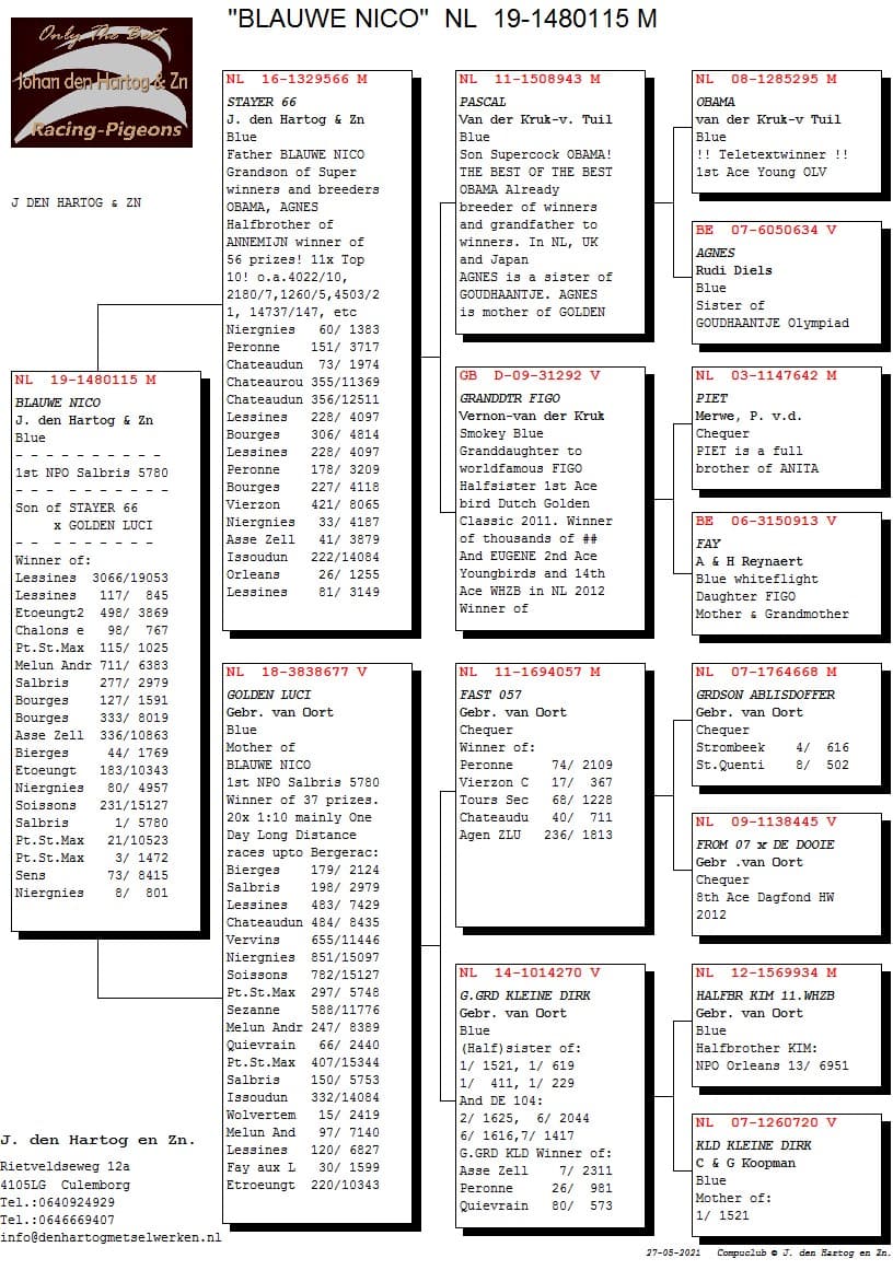 Ook in Nederland lopen de vluchten vlot en krijgen we elke week op de midfond duizenden duiven aan de start. Zo was er voor Afdeling 7 op 23 mei de vlucht vanuit Salbris waar 5.852 duiven werden gelost. De snelste op deze vlucht was de doffer “Blauwe Nico” die we vinden op de hokken van Johan de Hartog en Zoon uit het Nederlandse Culemborg. Deze doffer was niet aan zijn proefstuk toe en kan al een aardig palmares voorleggen.