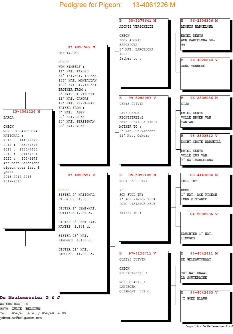En misschien wel de taaiste krijger van het ganse hok is de Barca, die 5 jaar na elkaar Barcelona won en hiermee de 4e beste duif is over 5 Barcelona-vluchten.