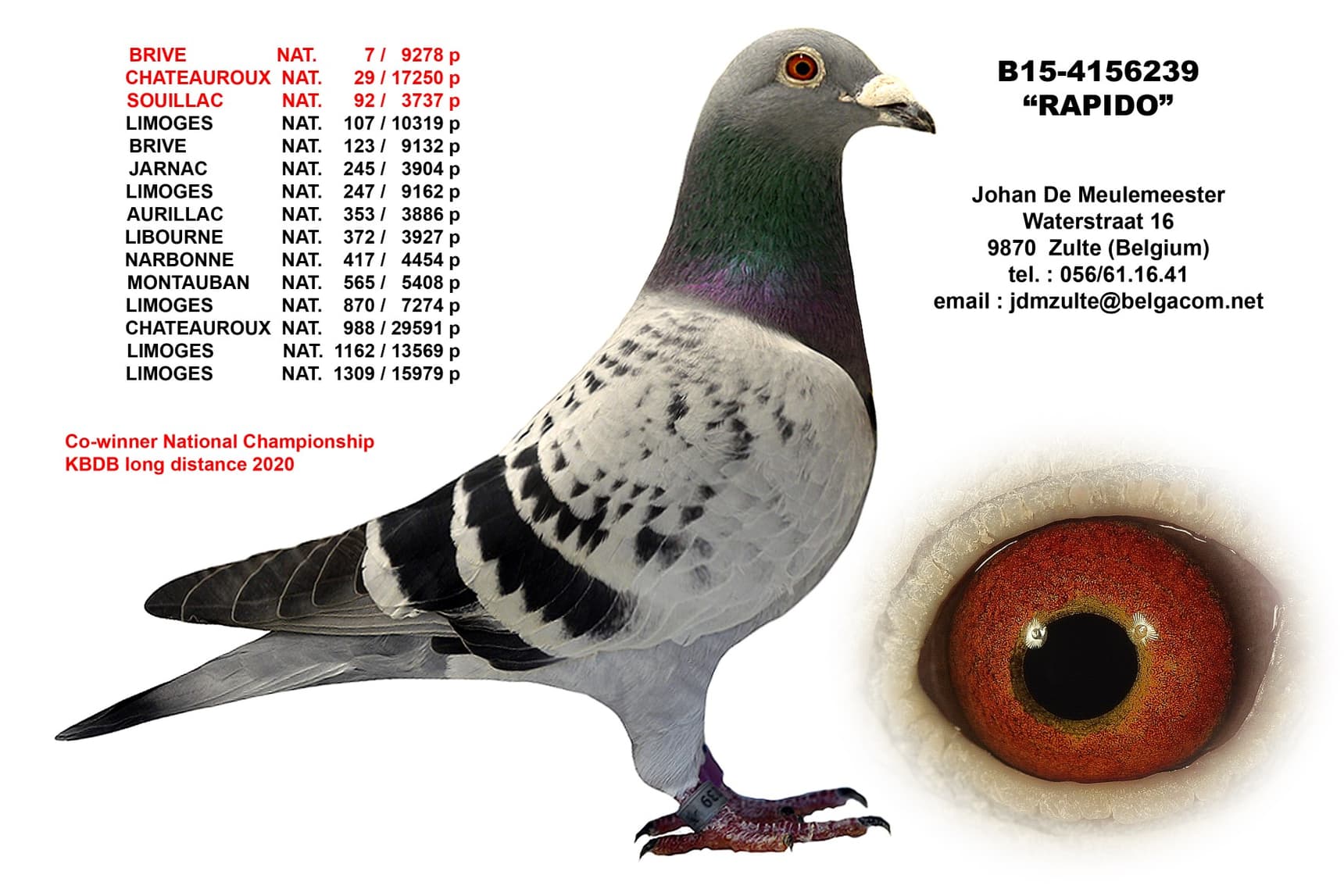 Wat evenwel niets afdoet aan de ambitie van Johan om jaarlijks de nationale en internationale podia te bestijgen. Bij een lekkere tas koffie blikt hij even terug op het voorbije seizoen en geeft toe dat voor het steeds “pakken” van de 1e en 2e getekende duif op de zware fond de geluksfee een beetje aan je zijde moet staan, maar dat je vooral moet beschikken over een hok met duiven waarvan je weet tot wat ze in staat zijn en hoe hun gebruiksaanwijzing in elkaar zit.