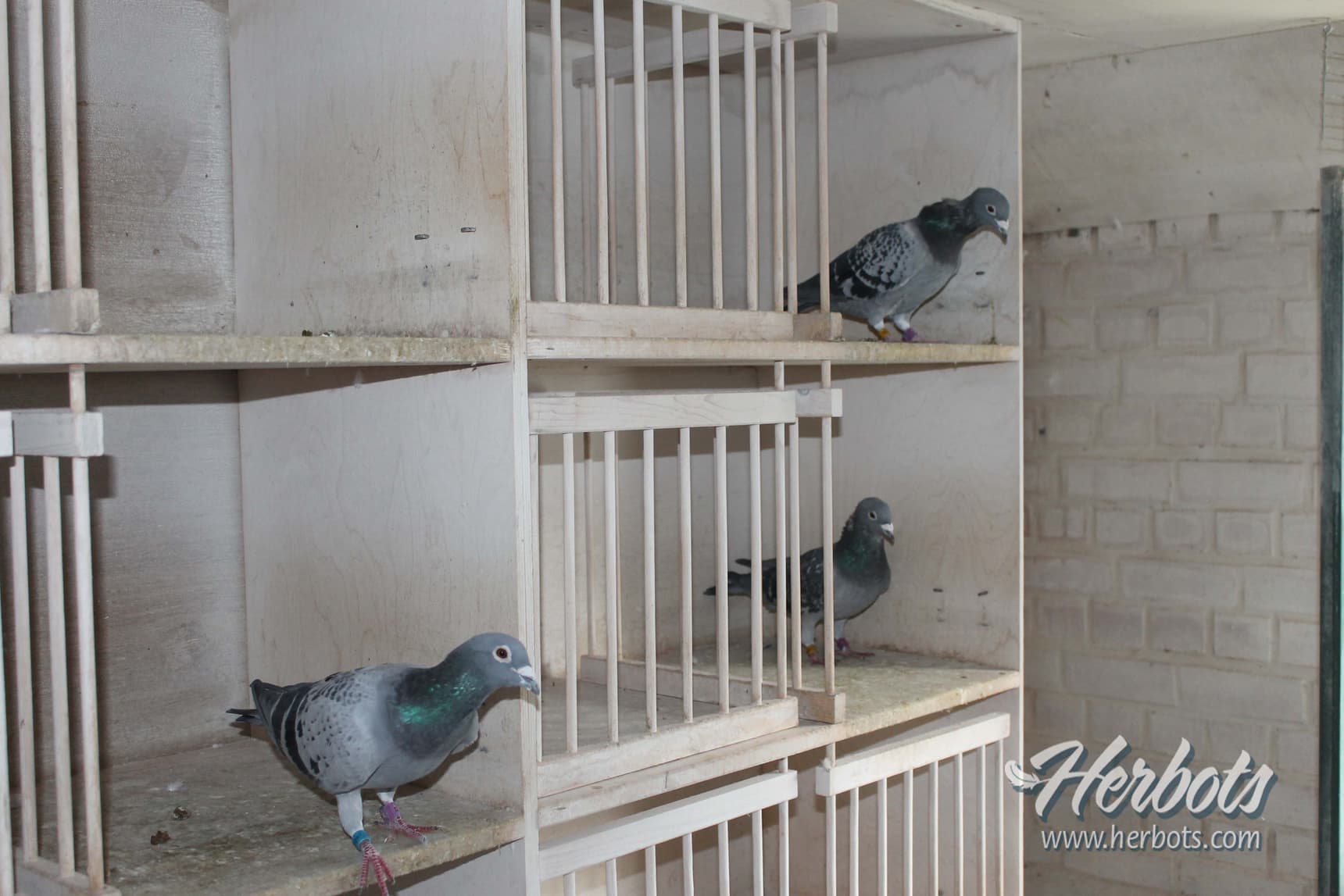 Wat opvalt zijn weinig duiven op veel hok. De weduwnaars huizen op luchtige zolderhokken boven de vroegere stallingen. De duiven ouder dan jaarling huizen op afzonderlijke hokken en de jaarlingen huizen op ‘jaarlinghokken’. Eens 2 jaar verhuizen ze naar de hokken van de oude duiven. De jonge duiven zijn gehuisvest op de stallingen beneden op het erf.