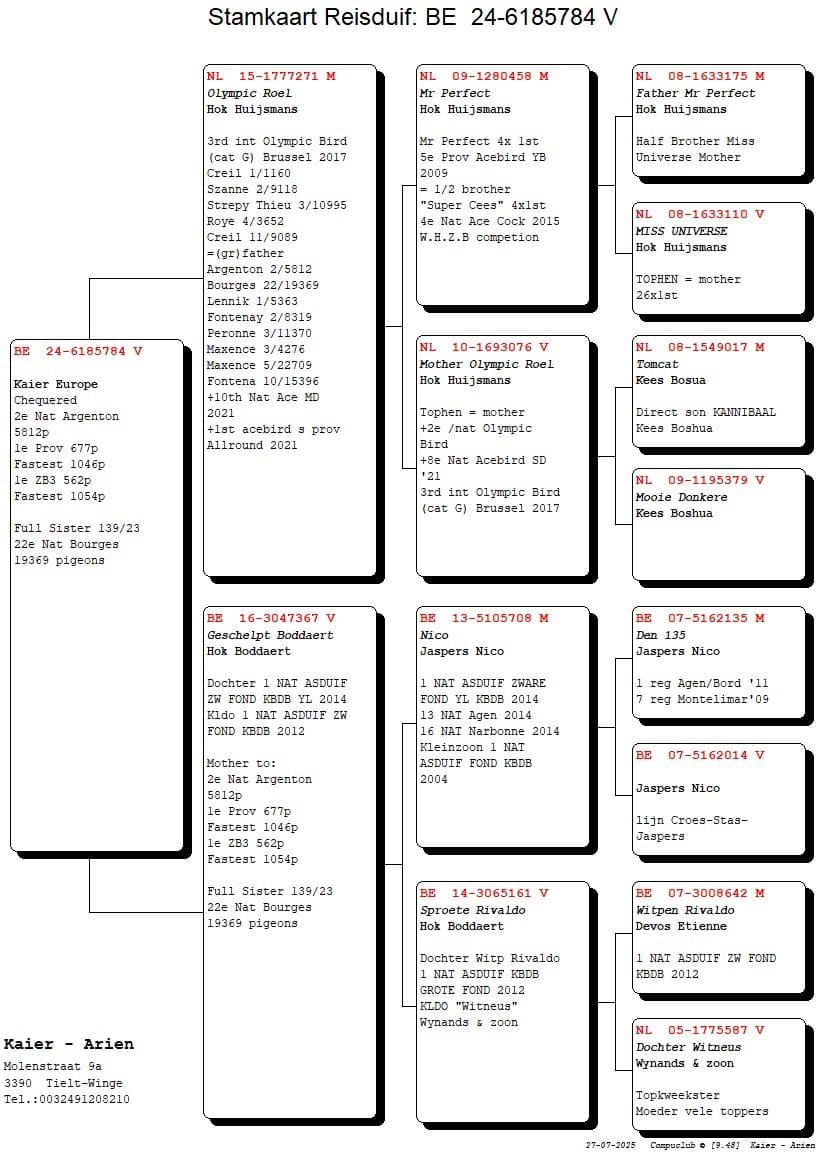 Zoon van “NL 458/09” Mr.Perpect won 4 x 1ste x “NL 076/10” Kleindochter Kannibaal Kees Bosua