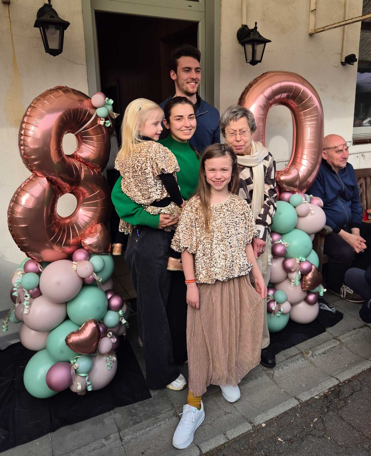 Al enkele jaren is de 'grote forme' misschien wat weg bij Christiane, maar ze houdt er nog steeds van om de mooie momenten uit een mensenleven op gepaste wijze te vieren. Dit jaar was de feestvreugde ronduit uitzonderlijk. Zelf werd ze 80, of zoals ze het zelf met haar kenmerkende nuchterheid mooi verwoordt: "Ik word gewoon een beetje minder jong." Een prachtige levensvisie van een dame die haar uitgebreide mensenkennis leerde in de 'hogeschool aan de toog', waar theorieën werden omgezet in levenswijsheid en de dagelijkse praktijk.