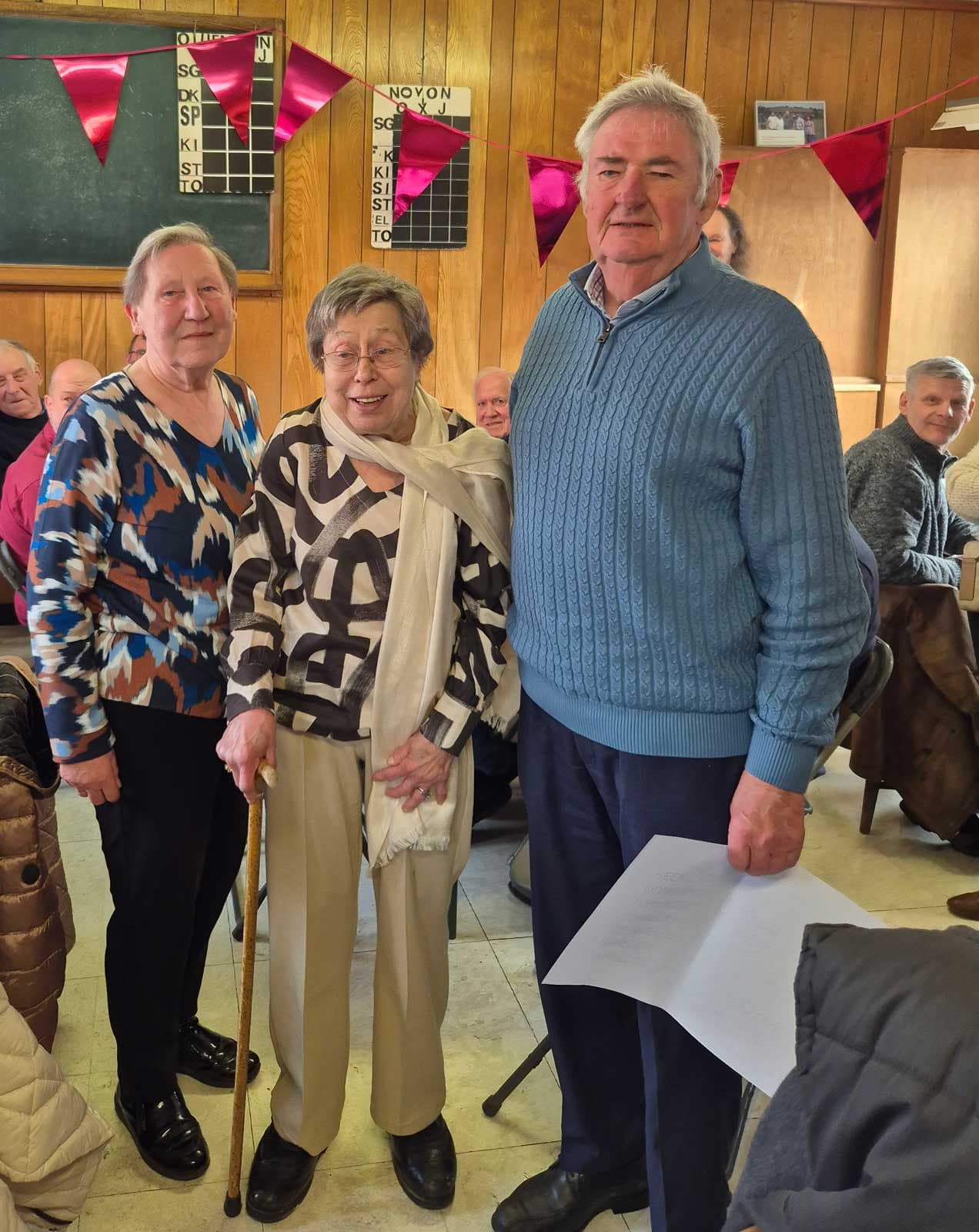Tijdens de viering kregen dan ook enkele absolute steunpilaren de welverdiende aandacht. Voorzitter William (foto hierboven) werd op gepaste wijze gehuldigd voor maar liefst 60 jaar trouwe dienst in het lokaal. Of het nu gaat om de manden klaarzetten, de duiven aanpakken of het zetten van de constateurs; William is altijd van de partij met een helpende hand. Ook medebestuurder Willy (foto hieronder), die ondertussen 50 jaar dienst op de teller heeft staan, mocht van Christiane ook een prachtig dinermenu in ontvangst nemen als blijk van grote waardering.