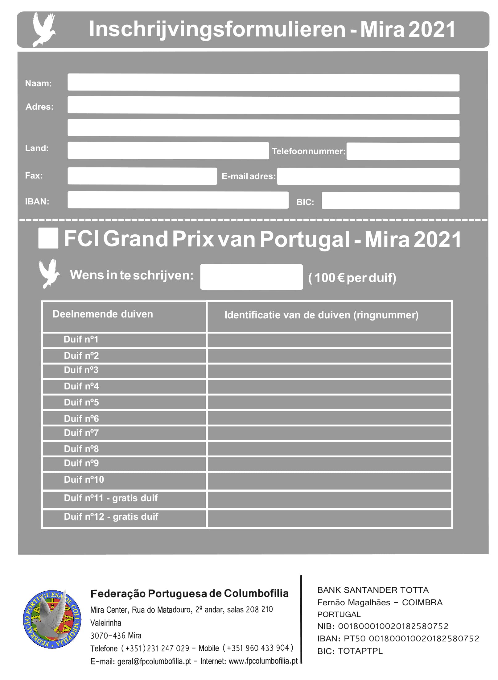 Info en reglementen in bijlage en www.fpcolumbofilia.pt