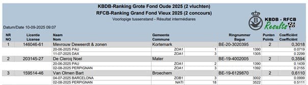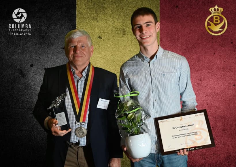Noël De Clercq (Mater-Oudenaarde) bezit met Olympic 005  1e Olympiade België fond en 2e asduif zware fond K.B.D.B.