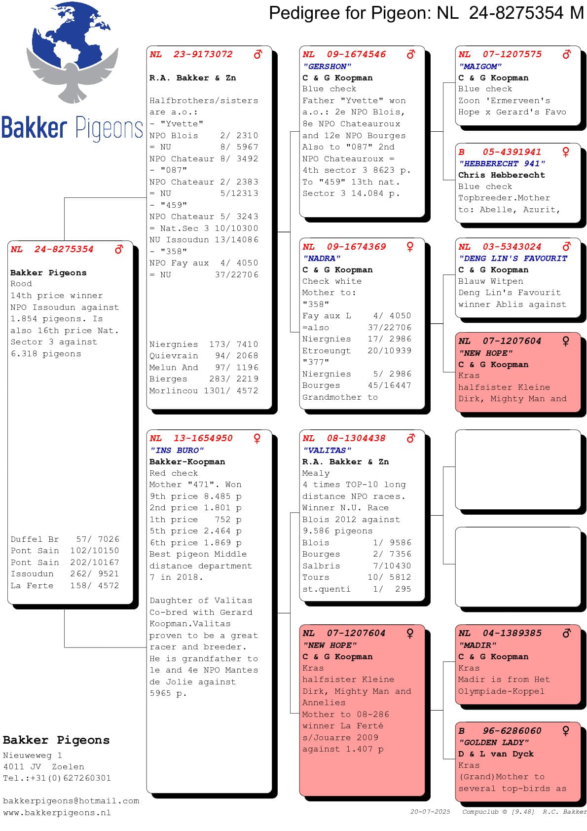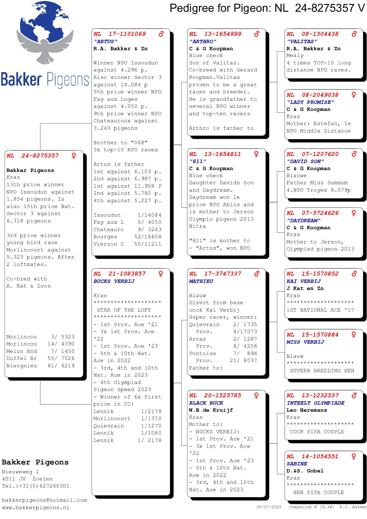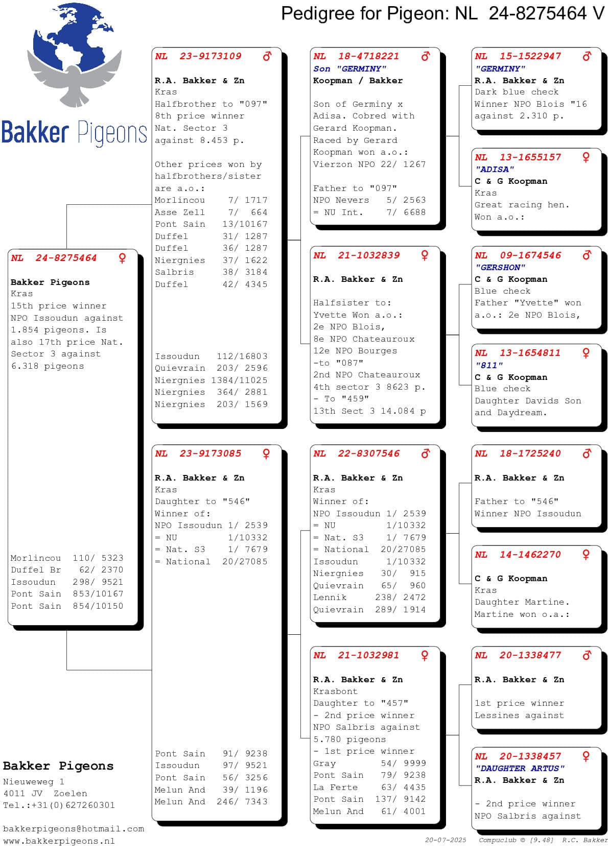 Hieronder vindt u de stambomen van de eerste vijf duiven van Ruud op deze vlucht.