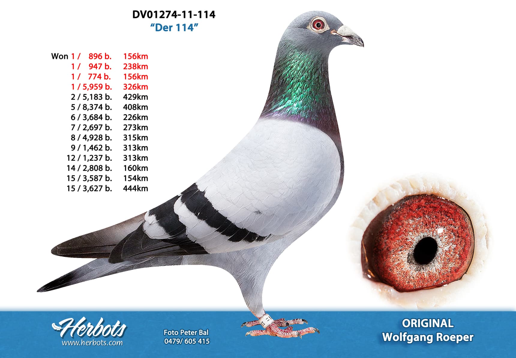 Jo Herbots liep tijdens de Olympiade in Nitra langs de tentoongestelde duiven en een bepaalde duif viel hem meteen op. “Wat voor een kerel zit daar” dacht Jo bij zichzelf en nieuwsgierig als hij was ging hij alles van dichtbij bestuderen. Niet enkel de duif zelf maar ook de behaalde prestaties waren van zelden geziene kwaliteit