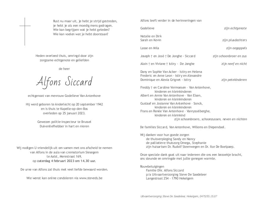 te Aalst, Merestraat 169, op zaterdag 4 februari 2023 om 14.30 uur.