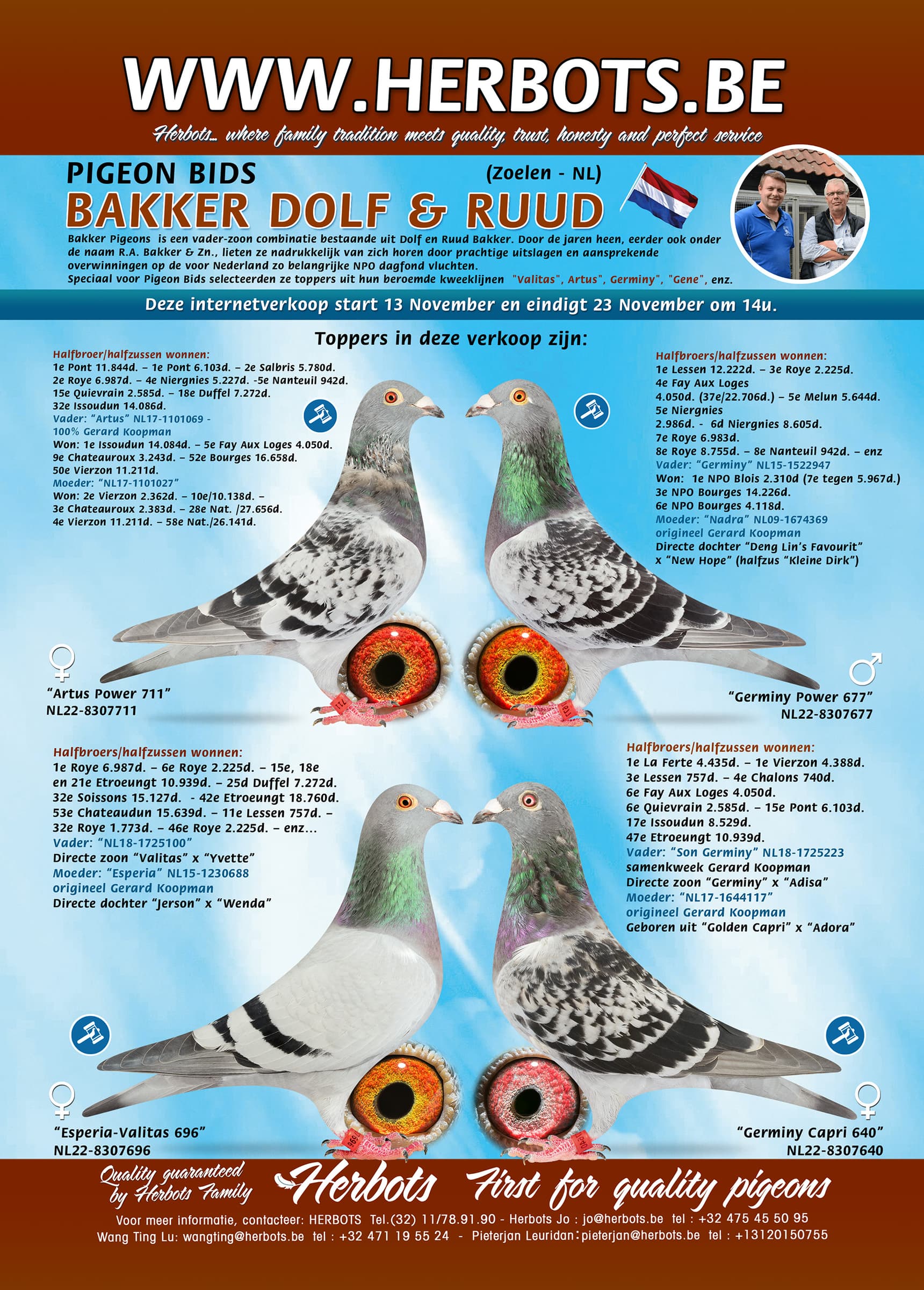 Dolf en Ruud bieden momenteel enkele streng geselecteerde 2022-duiven te koop aan op internet verkoop Pigeon Bids. Twijfel niet om ook uw kweekhok te versterken met deze gouden kweeklijnen.