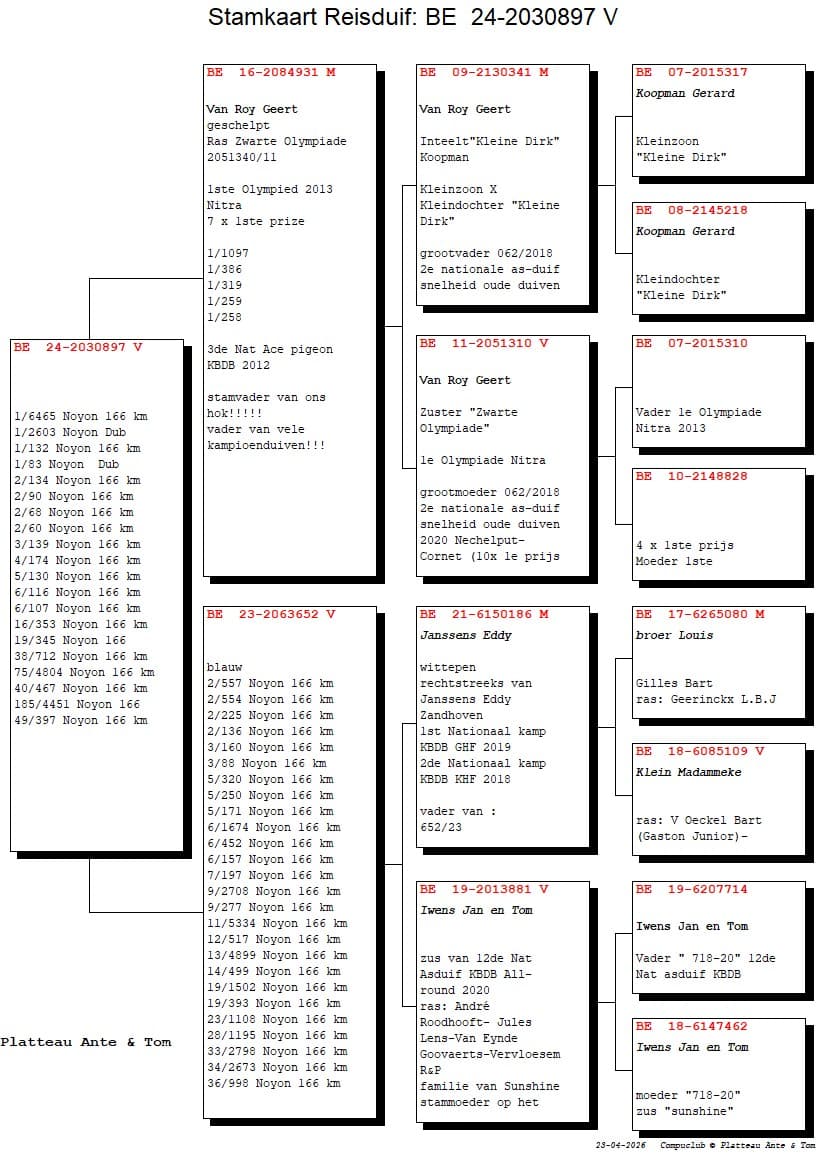 Deze overwinning werd behaald door geschelpte duivin. Een dame die van wanten weet want ze klasseerde haar ringnummer al 13 x in de Top-10. Zie palmares op de stamkaart
