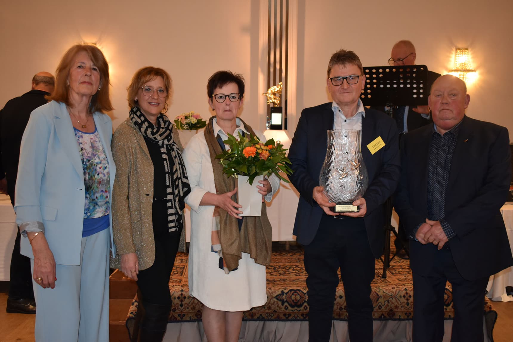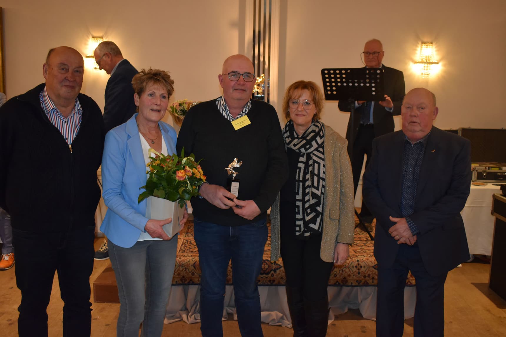- De grote winnaar was Hervé Noyelle uit Preures ( Frankrijk) die met de 4e prijs internationaal op Pau amper 0,1800% behaalde. Hiermee won hij ondermeer de Gouden Euro Diamond Pigeon Trophy met 1e geklasseerde op Pau, alsook de Gouden Euro Diamond Speld geschonken door Peter Wijnants ( het “Gouden Schip” – Oostende). Deze grote Franse fondkampioen werd ook als “Man van het jaar “ 2023 afgevlagd en won hierbij o.a. de Ereprijs Bricon welke werd overhandigd door de heer Bart Houfflyn.