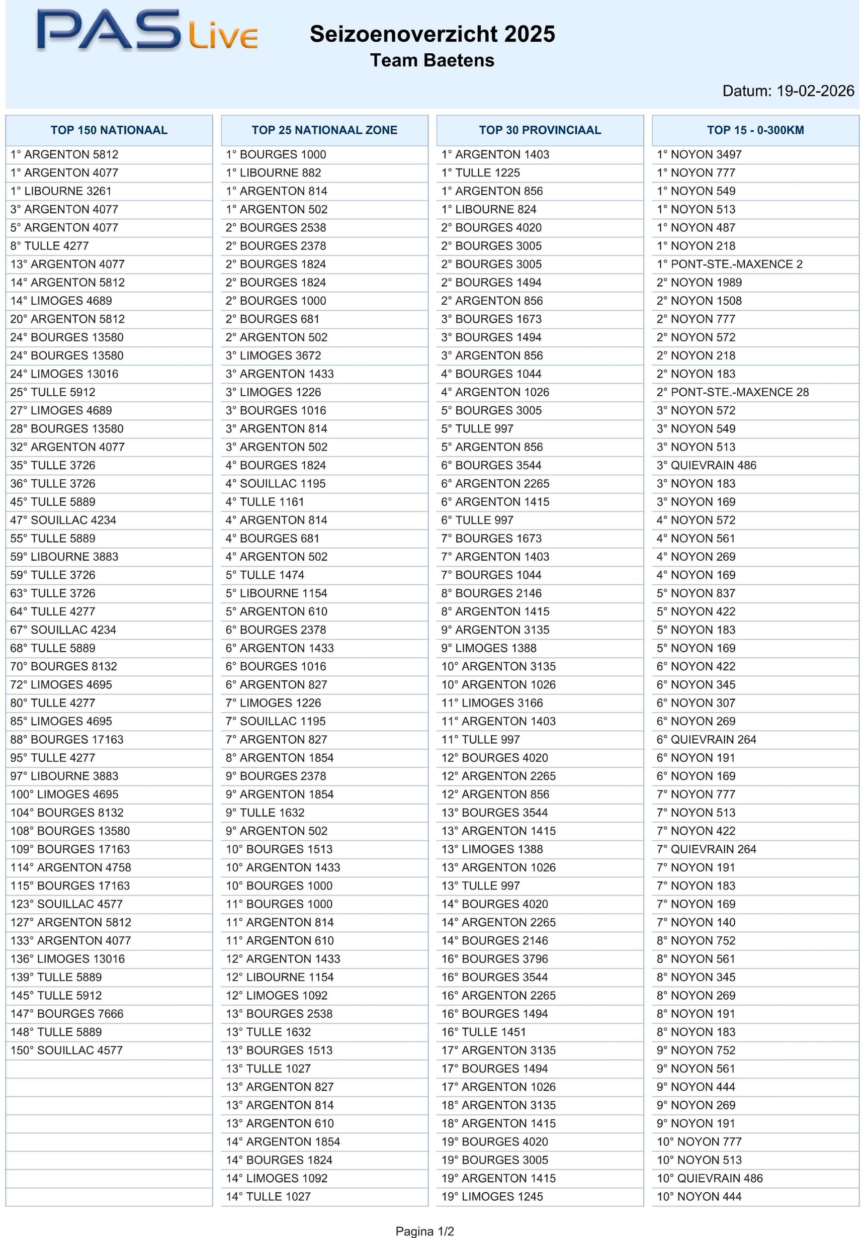 Wel... hetzelfde weekend dat “Miss Argenton” bejubeld werd voor haar nationale zege won haar zus “LS 002” (B23-4003002) de 1e prijs provinciaal Orleans tegen 2.758 oude duiven en op het einde van het seizoen 2024 werd “LS 002” als 6e provinciale asduif KBDB Oost-Vlaanderen afgevlagd. Nu een jaar later – seizoen 2025 - wint “LS 002” de 1e nationaal Argenton tegen 4.077 oude en was ze de snelste van gehele lossing van 9.889 duiven (1357 m/m – 541km). Hoe mooi kan de duivensport zijn… twee zussen die elk een 1e nationaal Argenton winnen. En om de klasse van de Baetens duiven nog eens dubbel en dik te onderlijnen, zowel “Miss Argenton” als “LS 002” zijn eveneens halfzussen, zelfde vader, van de 1e Nationaal Sancoins!