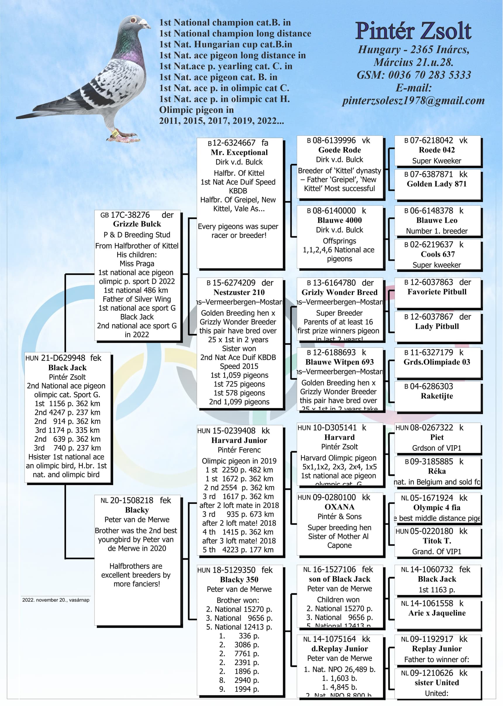 Hierbij duiven welke verkocht werden in de vorige totale verkoop maar niet betaald door de koper en een groep van 2021-duiven welke voor de verkoop van Peter gekocht werden door een buitenlandse klant maar wegens transport problemen is deze "deal" geannuleerd.