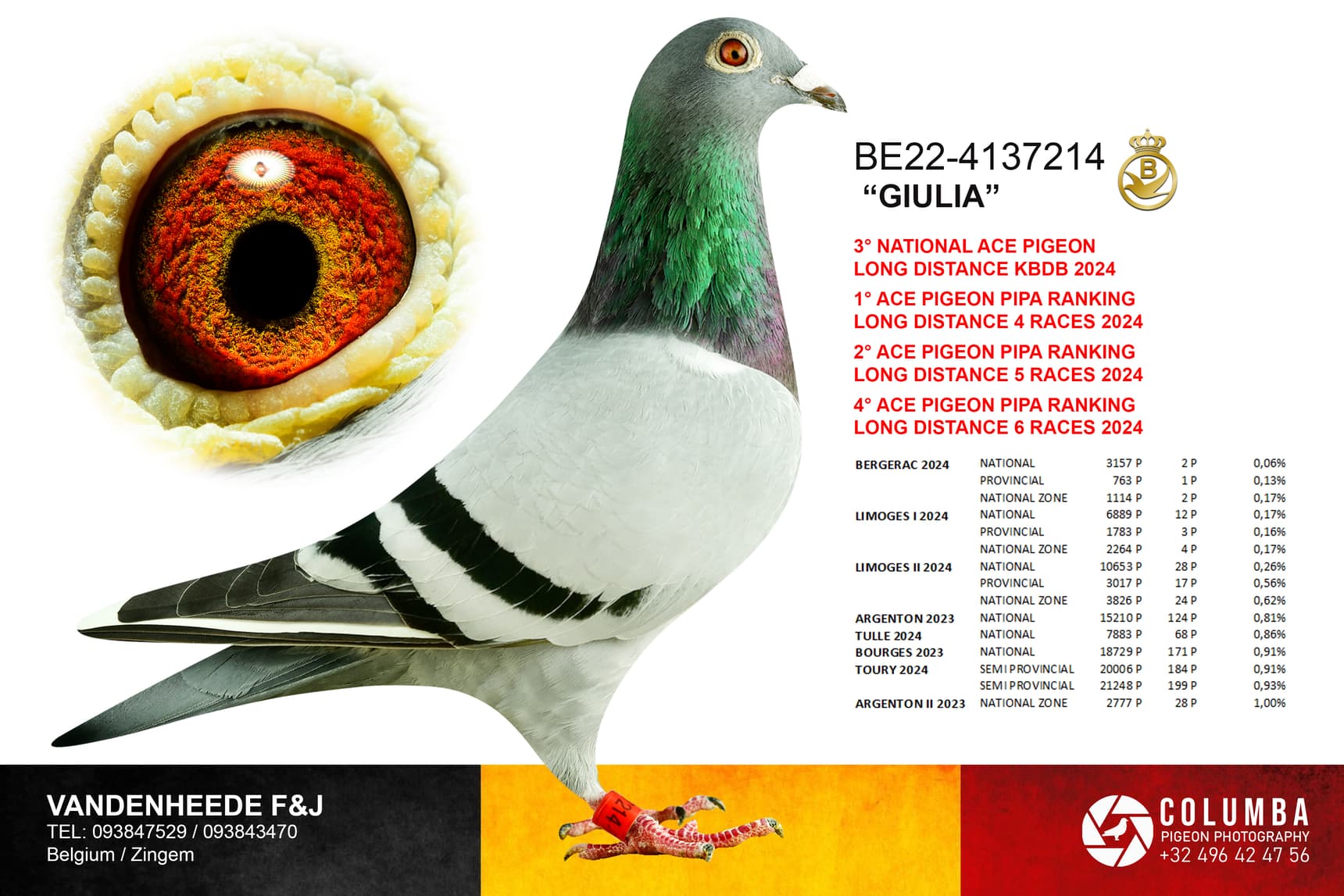 - Beste duif op 4 nationale fondwedstrijden met Gulia 22-4137214