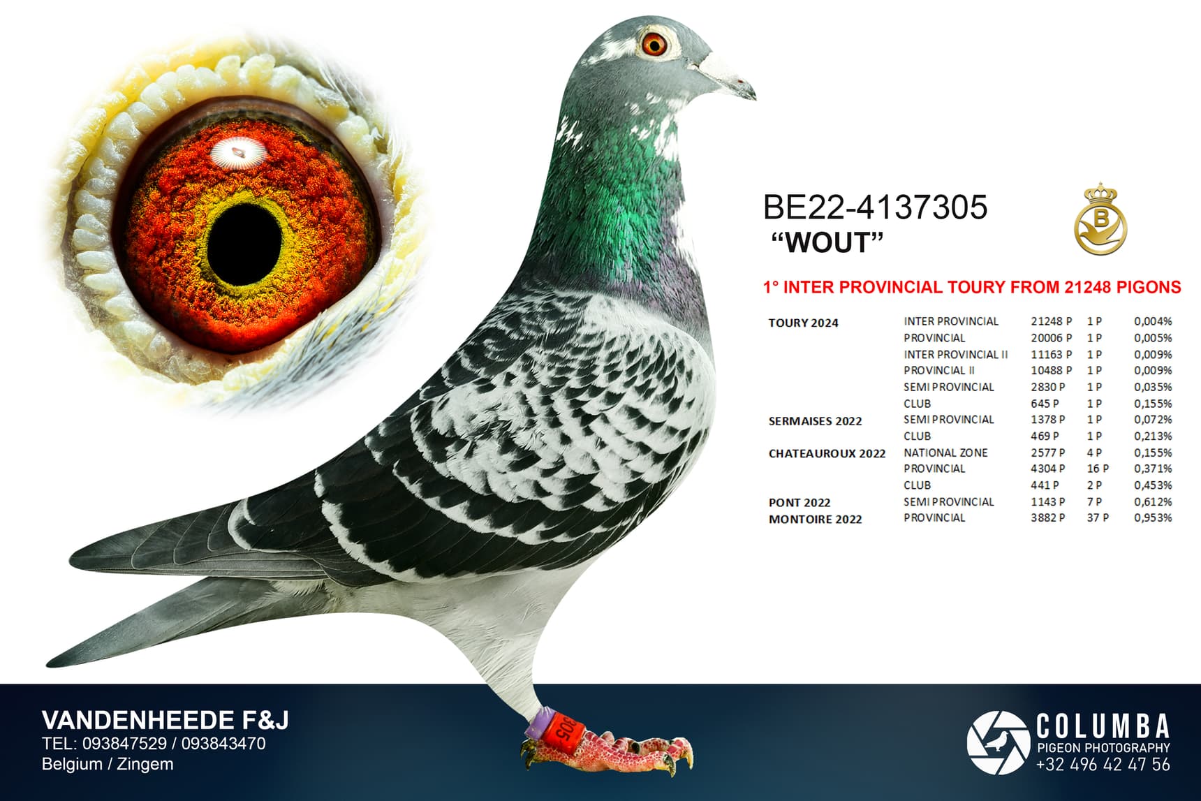 Wout 22-4137305 vloog 1° prijs van 21.248 duiven