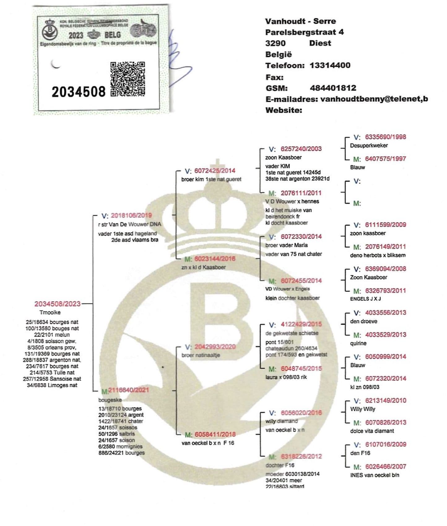 Dochter van “993/20” Broer Nationaaltje x “411/18” Kleindochter F 16 Van Oeckel B & N