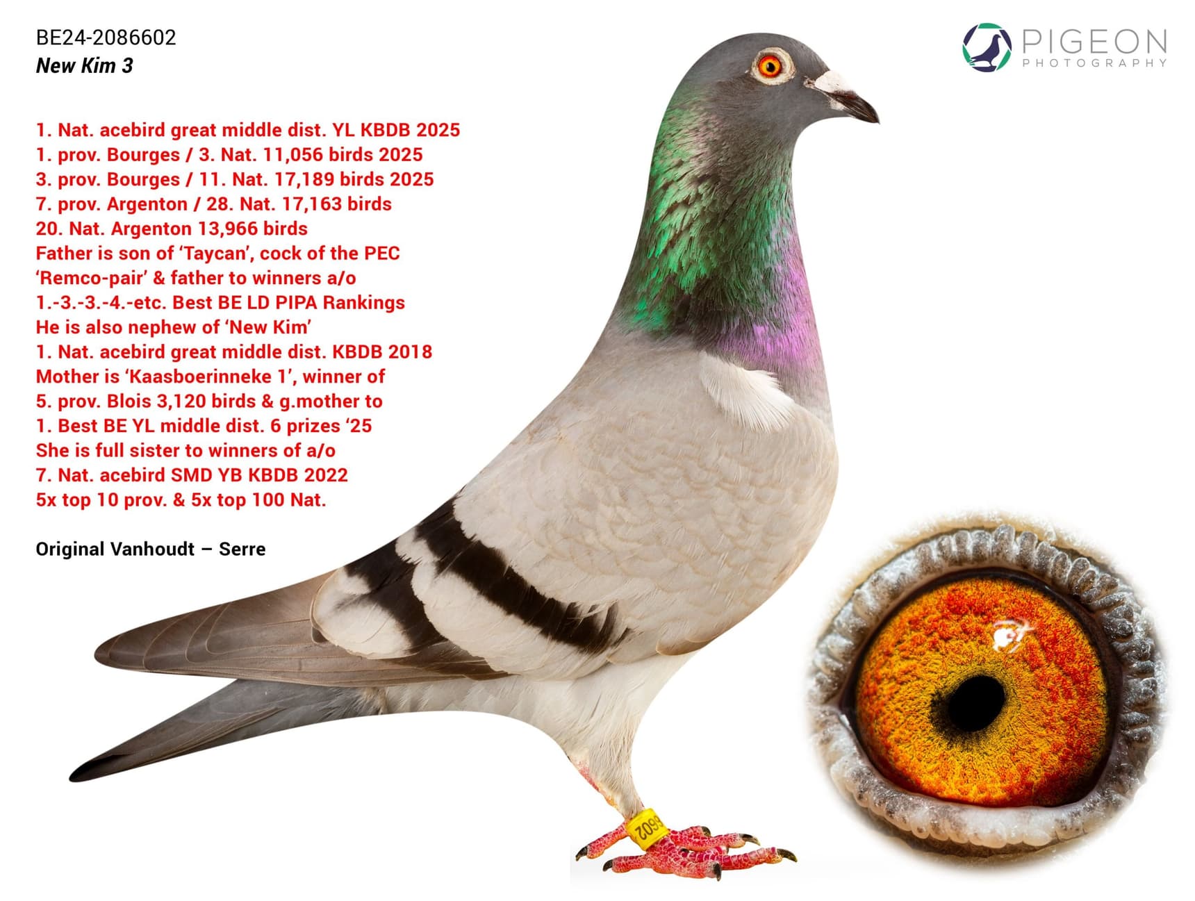 In principe gaan de duiven elk weekend mee en vlogen ze enkel na Bourges toen met 4 nachten mand een korte vlucht het weekend nadien vanuit Soissons. De week voor de laatste nationale vlucht vanuit Bourges vlogen ze dan provinciaal Vierzon met een heel goed resultaat buiten “New Kim 3”. Zij miste een dik uur, dat was niet van haar gewoonte maar gelukkig kwam ze thuis en ging ze zo naar Bourges waar ze dus opnieuw mocht zegevieren. Na deze overwinning beslisten we om ze stop te zetten in de hoop dat ze de 1ste plaats ging behouden en dat is gebeurt.