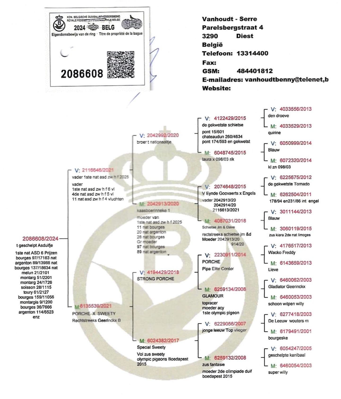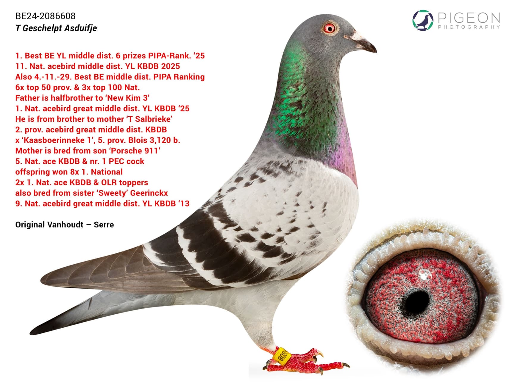 Dochter van “106/19” Inteelt Kaasboer – Orig. Gaston Van de Wouwer is ook al vader van “Mooike” 14 Nat Asduif zware halve fond oude KBDB 2025 x “518/18” Nationaaltje