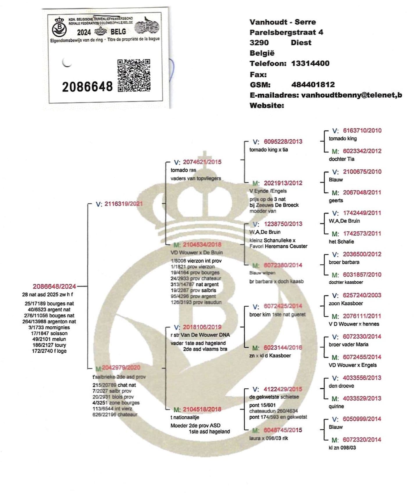Dochter van “648/15” Lijn Tornado Koppel Van Eynde Goovaerts x Lijn 178/94 en 231/86 J & J Engels