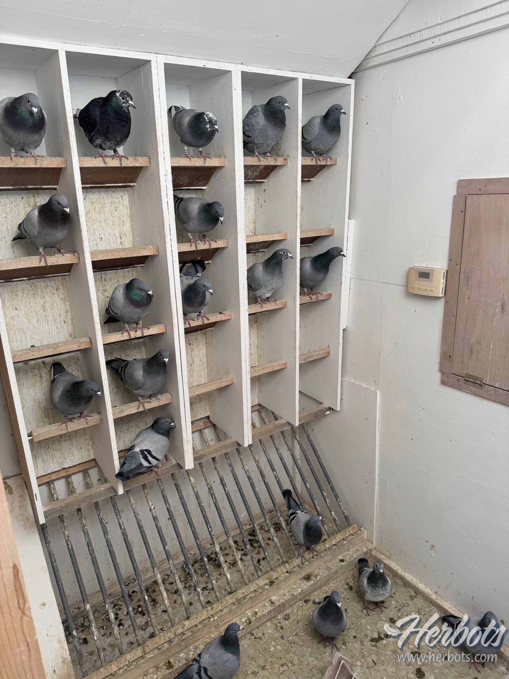 Bij de jonge duiven worden de 1ste en 2de ronde verduisterd, de laatjes niet. De bedoeling is altijd dat de eerste groep nationale vluchten zal vliegen maar dat viel dit jaar door een moeilijke provinciale vlucht vanuit Orléans in het water en dat de late jongen goed worden opgeleerd. Ik hoop deze 6 a 7 keer mee te geven en in 2025 deden ze 1 keer 2 nachten mand.