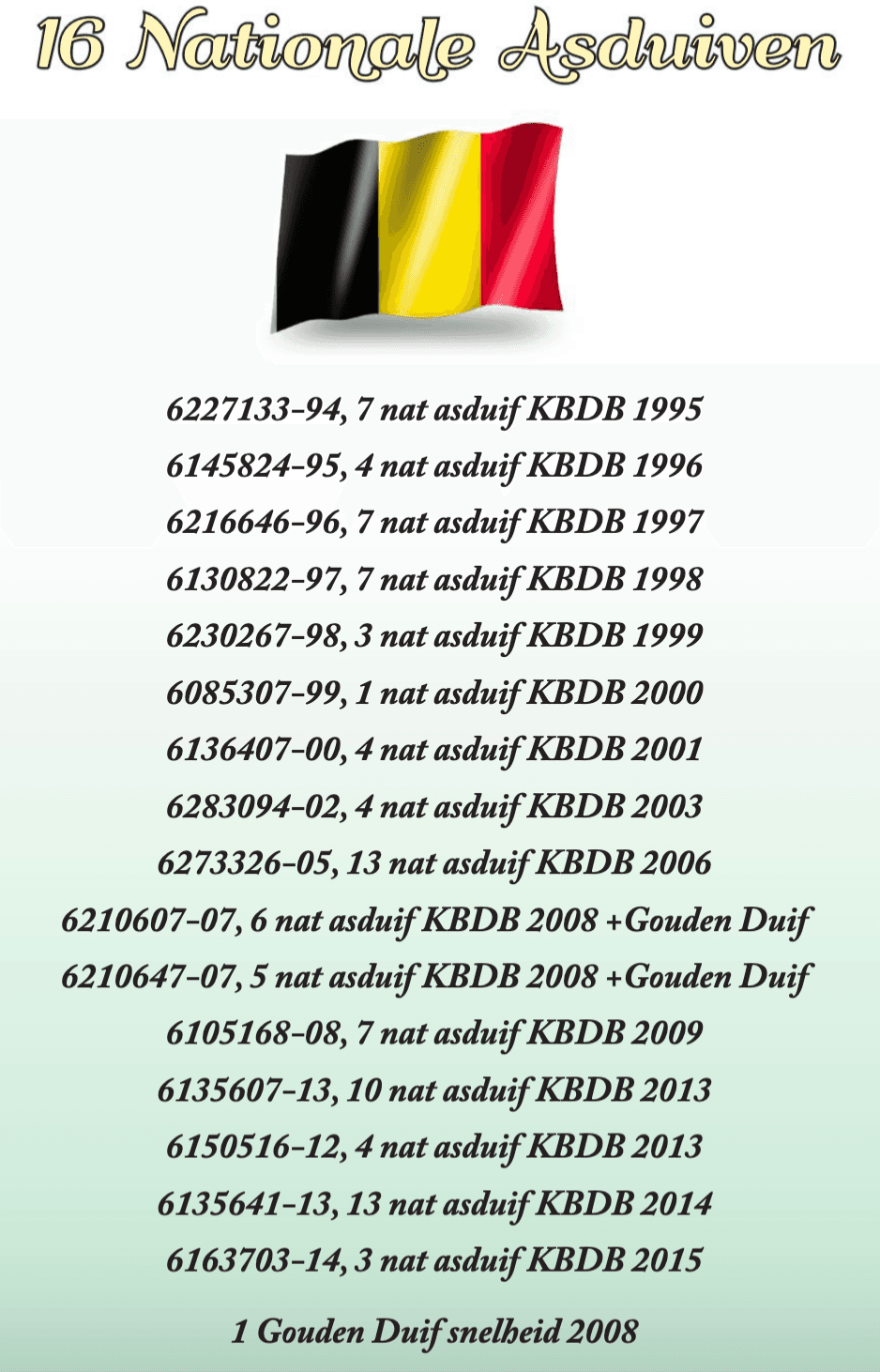 10 Nat. Ace pigeon youngsters K.B.D.B. 2013