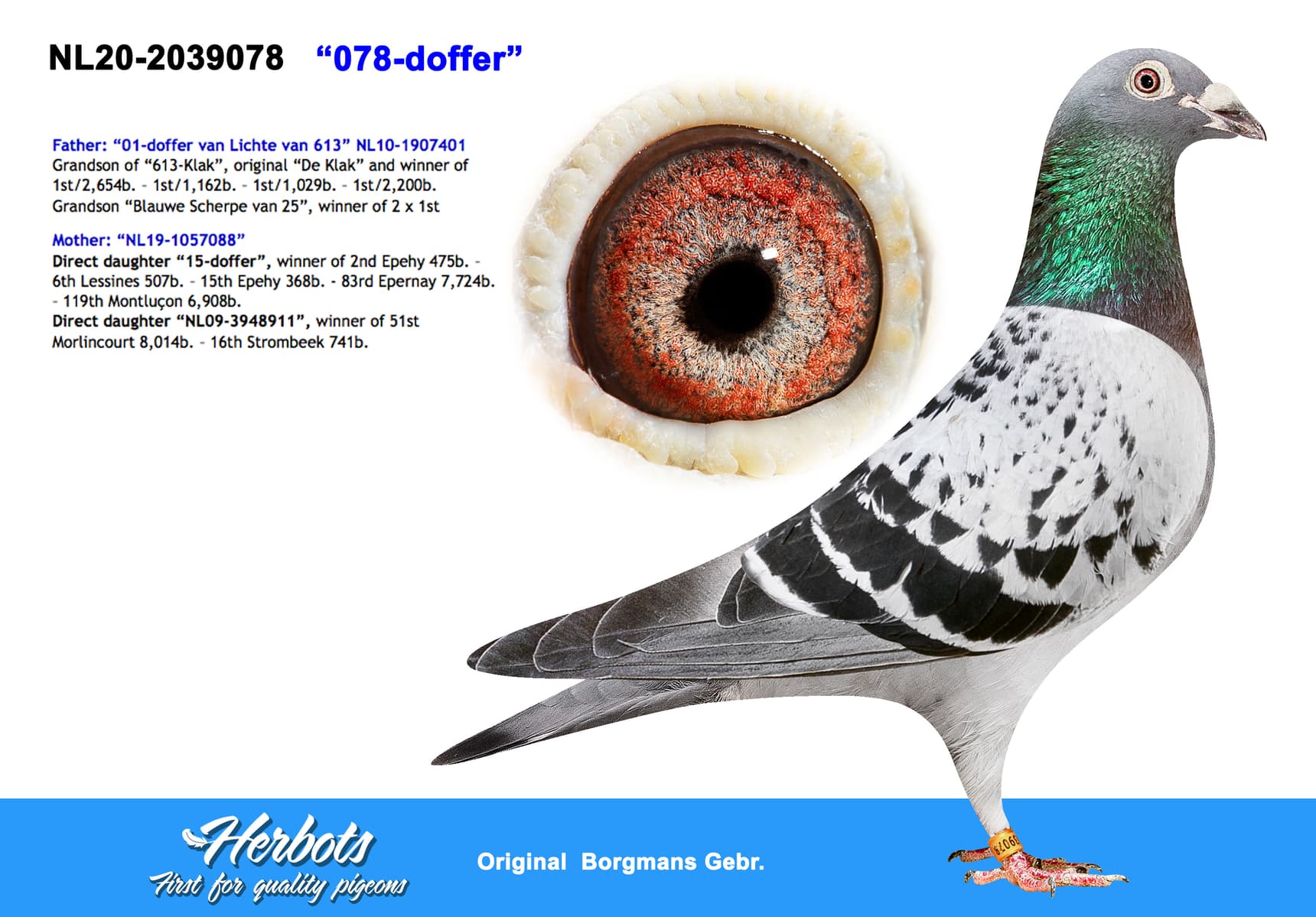 Direct daughter “15-doffer”, winner of 2nd Epehy 475b. – 6th Lessines 507b. – 15th Epehy 368b. - 83rd Epernay 7,724b. – 119th Montluçon 6,908b.